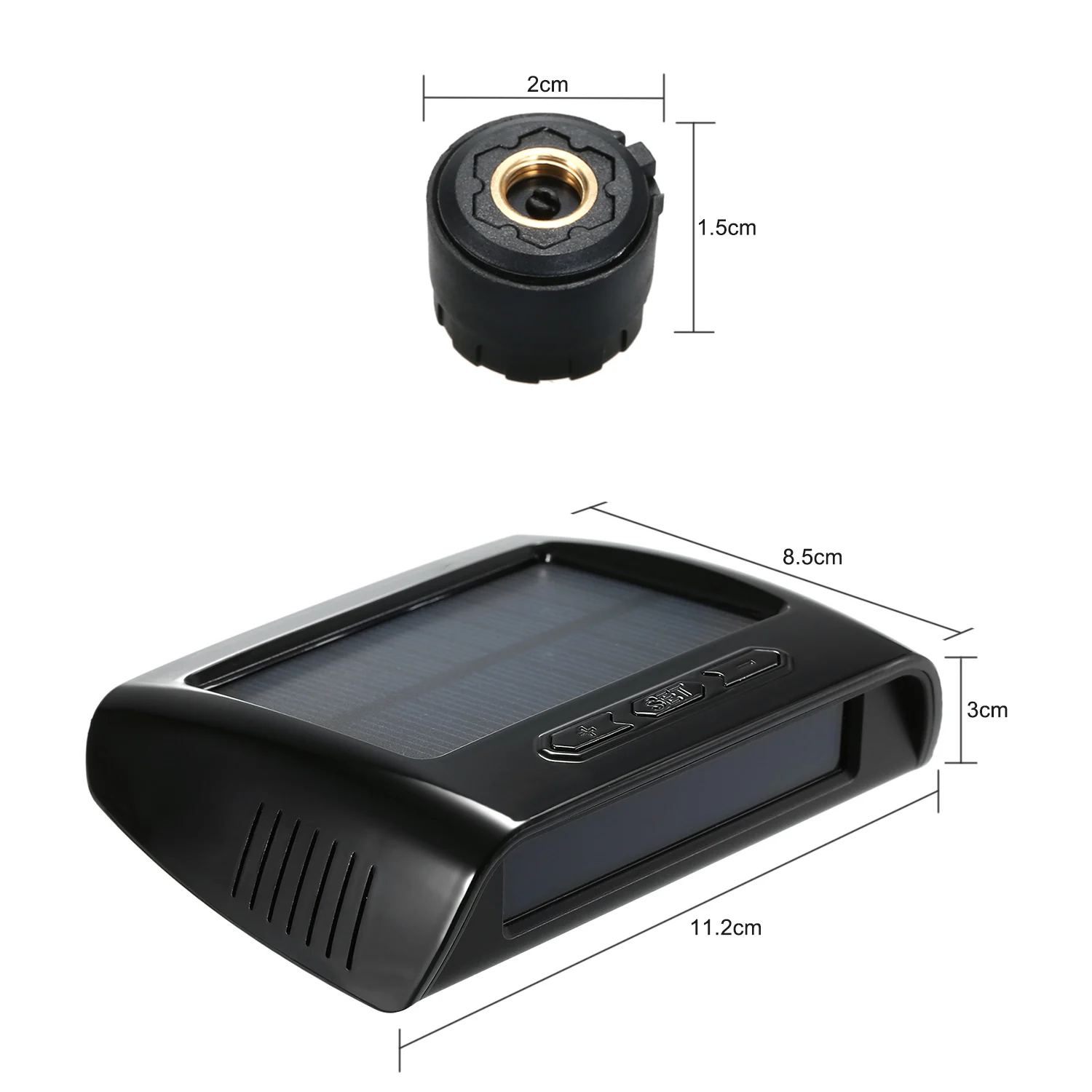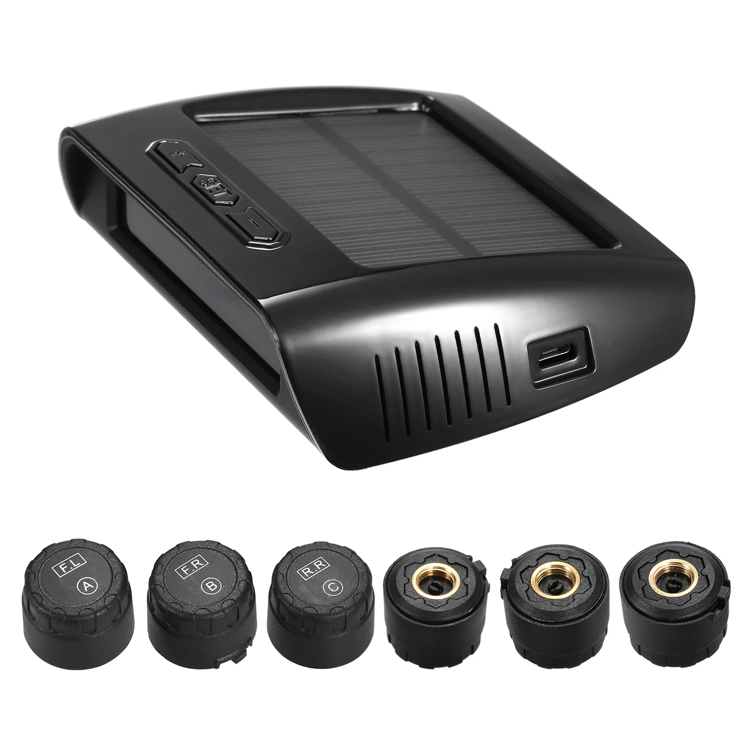 Солнечная энергия и зарядка через USB: интеллектуальная беспроводная система с 2 способами зарядки, которые обеспечивают непрерывную работу системы контроля давления в шинах, перезаряжаемая литиевая батарея для получения электричества может увеличить срок службы шин. Солнечная и USB зарядка Попрощайтесь с традиционной проводкой.