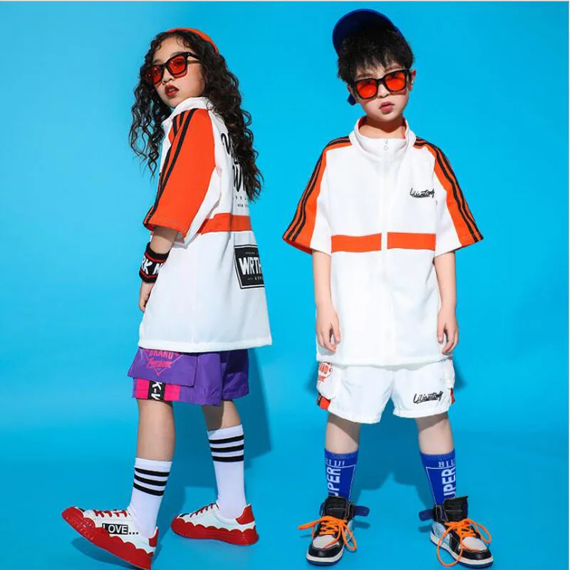 2020 г. Детская одежда в стиле хип-хоп свободная футболка, брюки топ для мальчиков и девочек, детская Концертная одежда для джазовых танцев костюмы, одежда Одежда для танцев