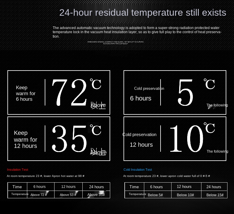 Советы: около 6-12 часов для сохранения тепла или холода, объем 480 мл
