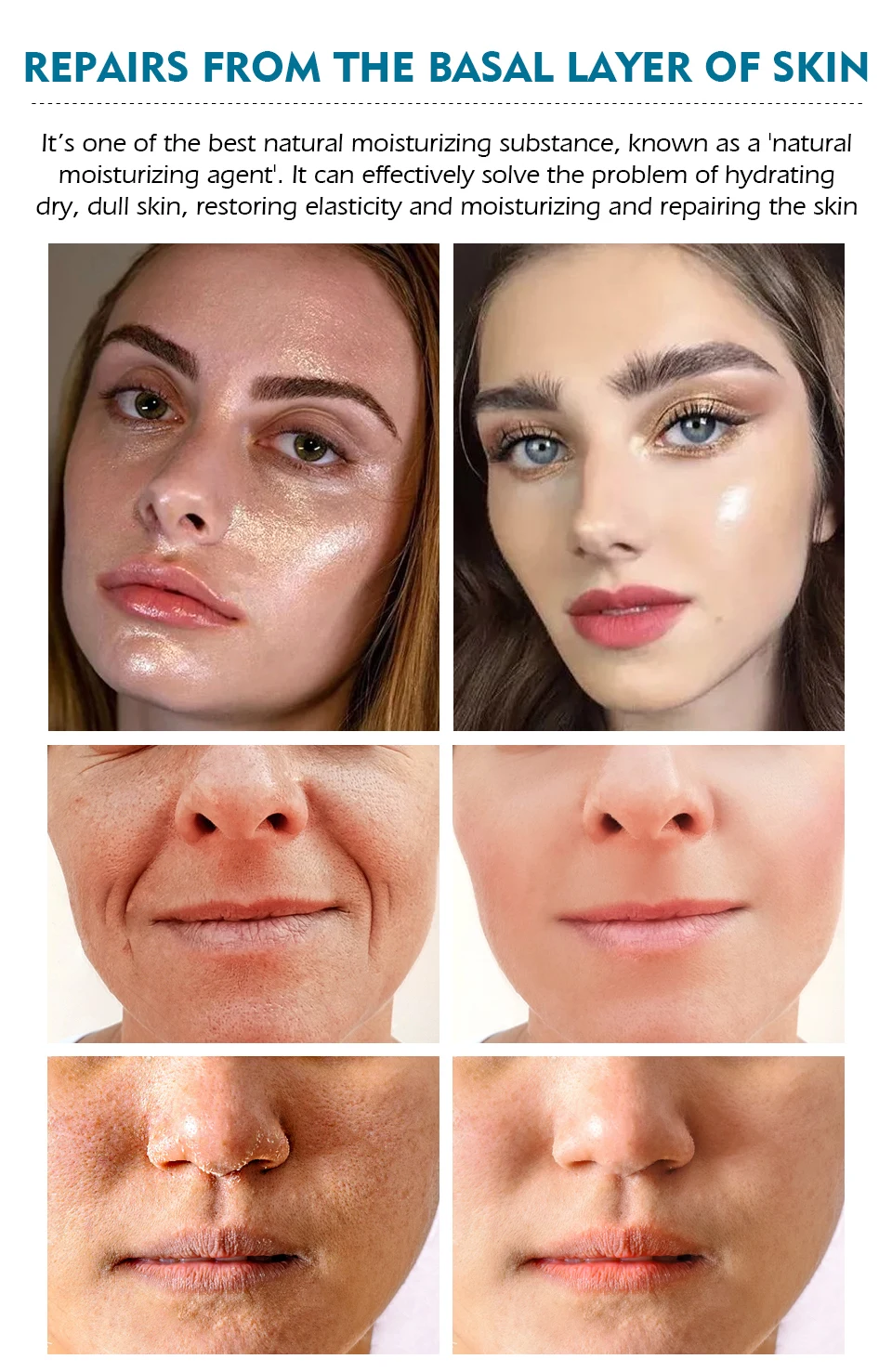 Восстанавливает базальный слой кожи. Это одно из лучших натуральных увлажняющих веществ, известное как «естественное увлажняющее средство». Он может эффективно решить проблему увлажнения сухой, тусклой кожи, восстанавливая эластичность, увлажняя и восстанавливая кожу