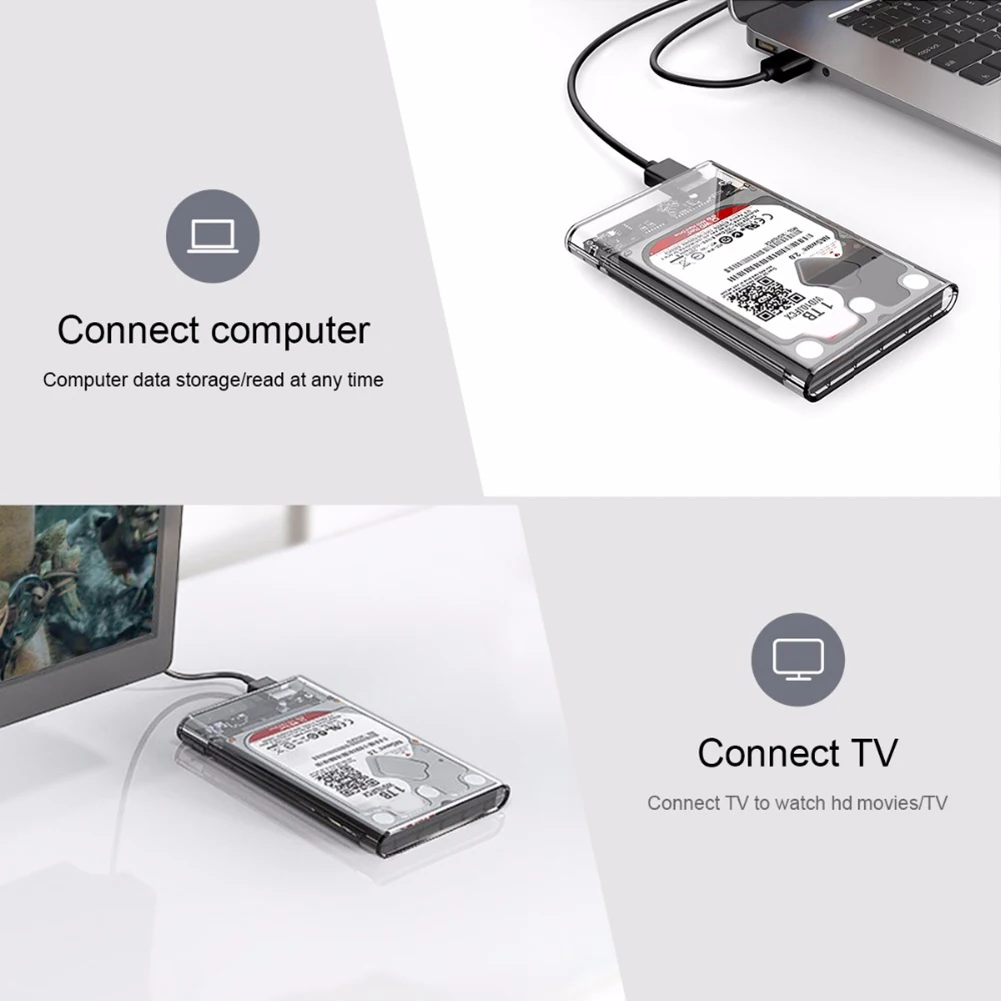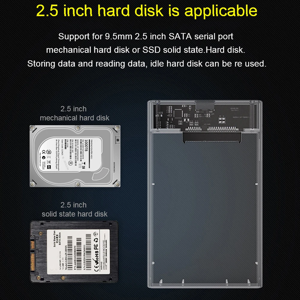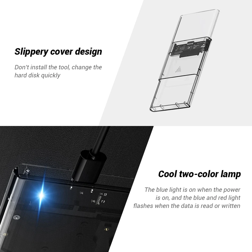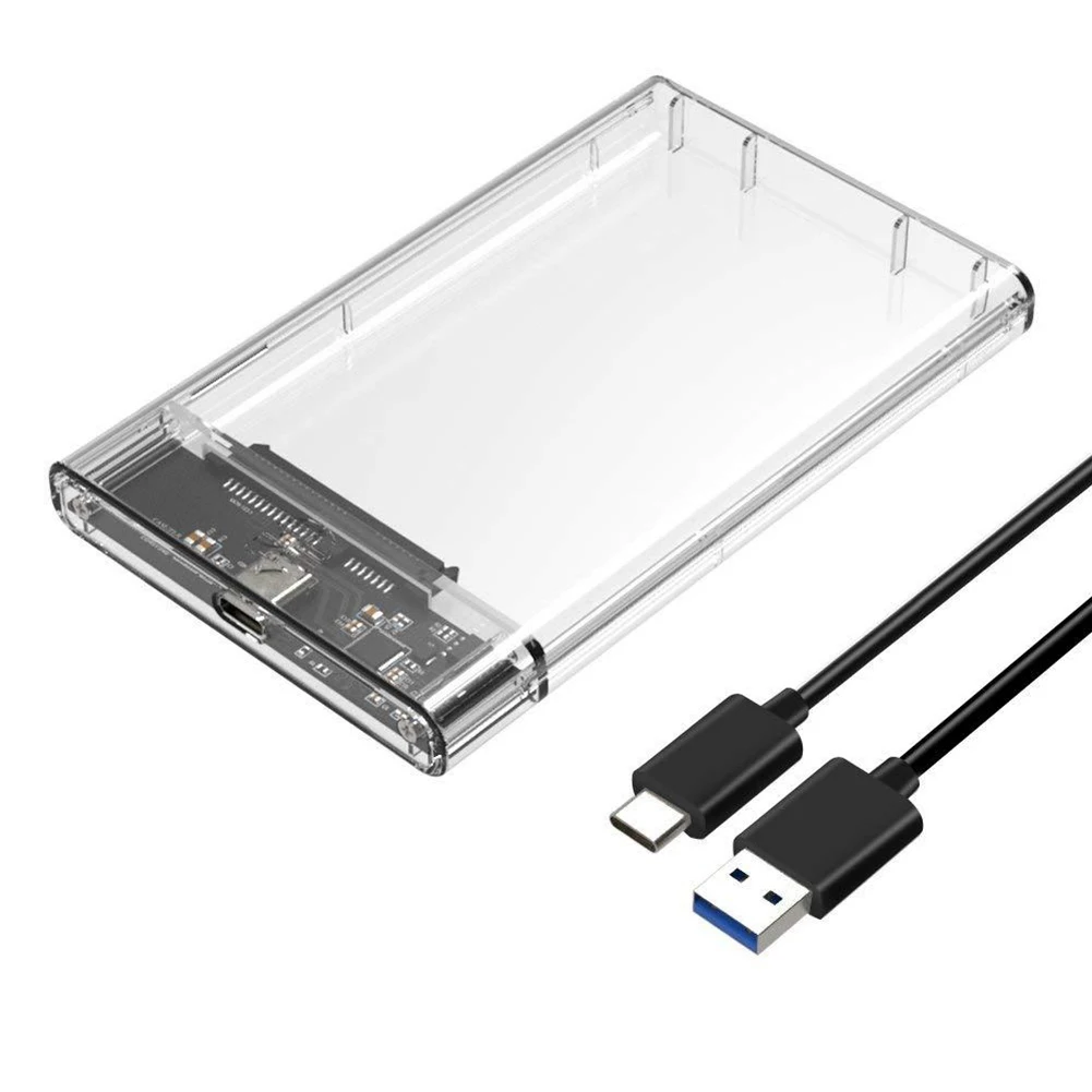 2,5 дюймовый жесткий диск чехол USB 3,0 HDD чехол Тип с разъемами типа C и жесткого диска SATA прозрачный корпус SSD Поддержка 2 ТБ 5 Гбит/с