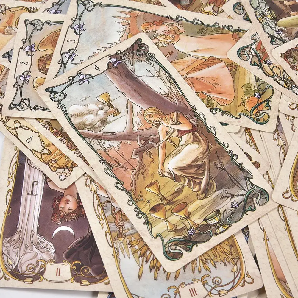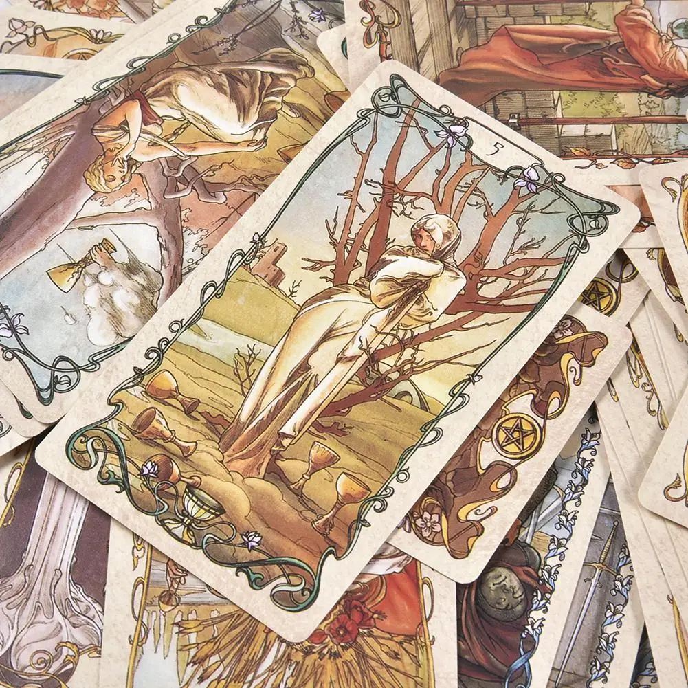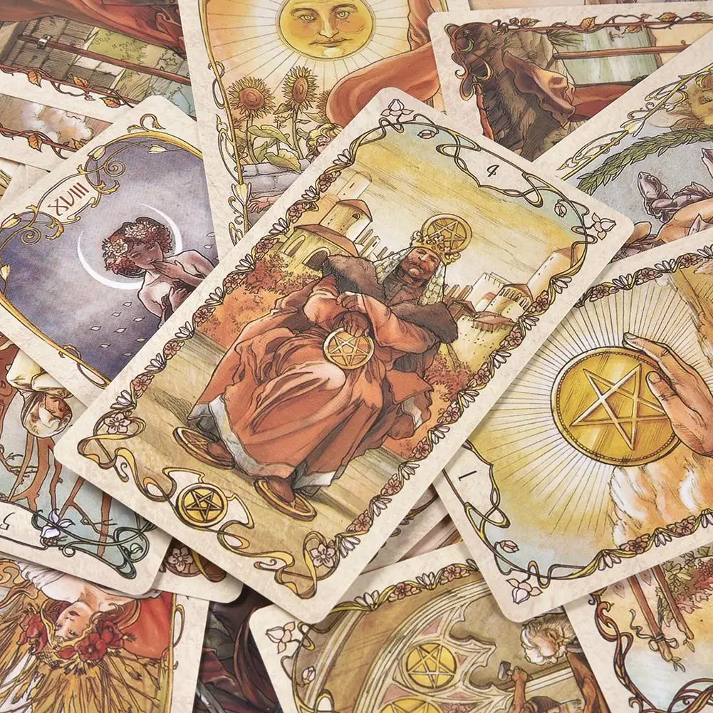 NEW 78 PCS Tarot Mucha Tarot Cards Tarot Table Deck Board Game Card For Family Gathering Party Playing Card Games #N
