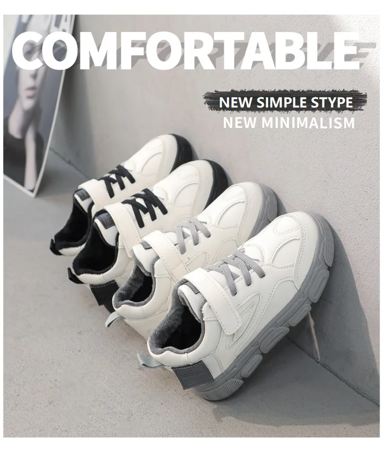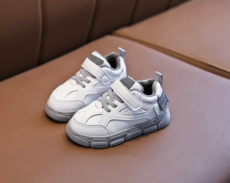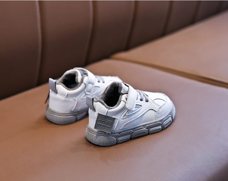 Детская повседневная обувь; Новинка 2020 года; Корейская спортивная обувь для мальчиков; Сезон осень-зима; Теплые белые кроссовки из искусственной кожи для бега; Детская обувь