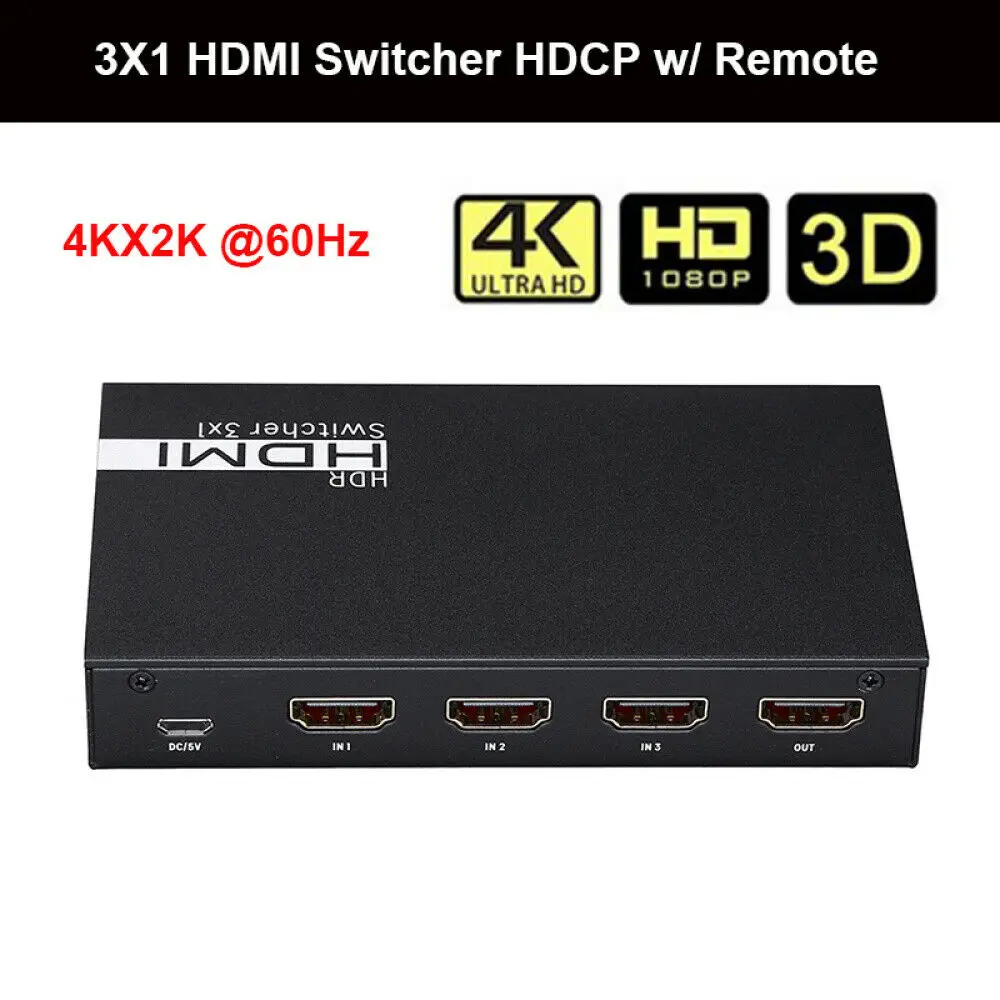 Это высокопроизводительный 3 HDMI входа и 1 HDMI выходной переключатель. Он поддерживает функции ретранслятора HDCP и быстрое переключение между любым входным портом HDMI. Система поддерживает все форматы 3D ТВ в дополнение ко всем HD ТВ форматам до 4 K x 2 K.