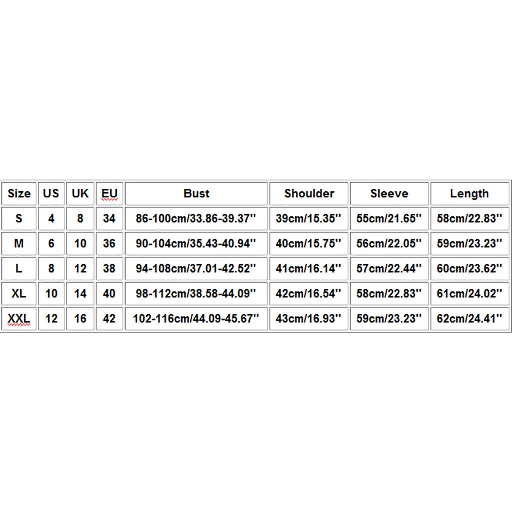 Размер Свяжитесь с нами Великобритания ЕС Обхват груди Сумка на плечо Рукава Длина S 4 8 34 86-100 см/33,86-39,37'' 39 см/15,35'' 55 см/21,65'' 58 см/22,83'' М 6 10 36 90-104 см/35,43-40,94'' 40 см/15,75'' 56 см/22,05'' 59 см/23,23'' L 8 12 38 94-108 см/37,01-42,52'' 41 см/16,14'' 57 см/22,44'' 60 см/23,62'' XL 10 14 40 98-112 см/38,58-44,09'' 42 см/16,54'' 58 см/22,83'' 61 см/24,02'' XXL 12 16 42 102-116 см/44,09-45,67'' 43 см для ухода за ребенком для мам/16,93'' 59 см/23,23'' 62 см/24,41''