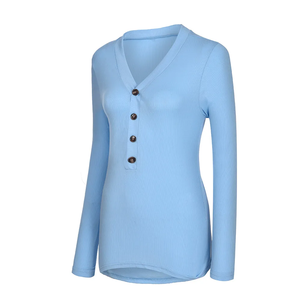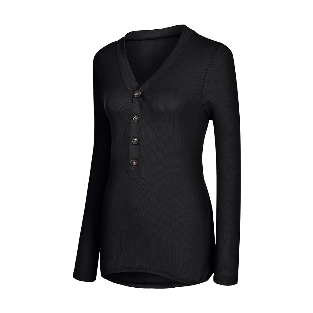 Женская однотонная блуза на пуговицах с длинным рукавом и v-образным вырезом, пуловер, топы, рубашка