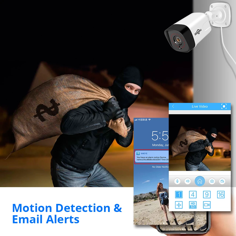 При обнаружении опасности HB215-P ip-камера наблюдения запускает оповещения, незамедлительно отправляя оповещения по электронной почте и нажимая уведомления на ваше устройство.
