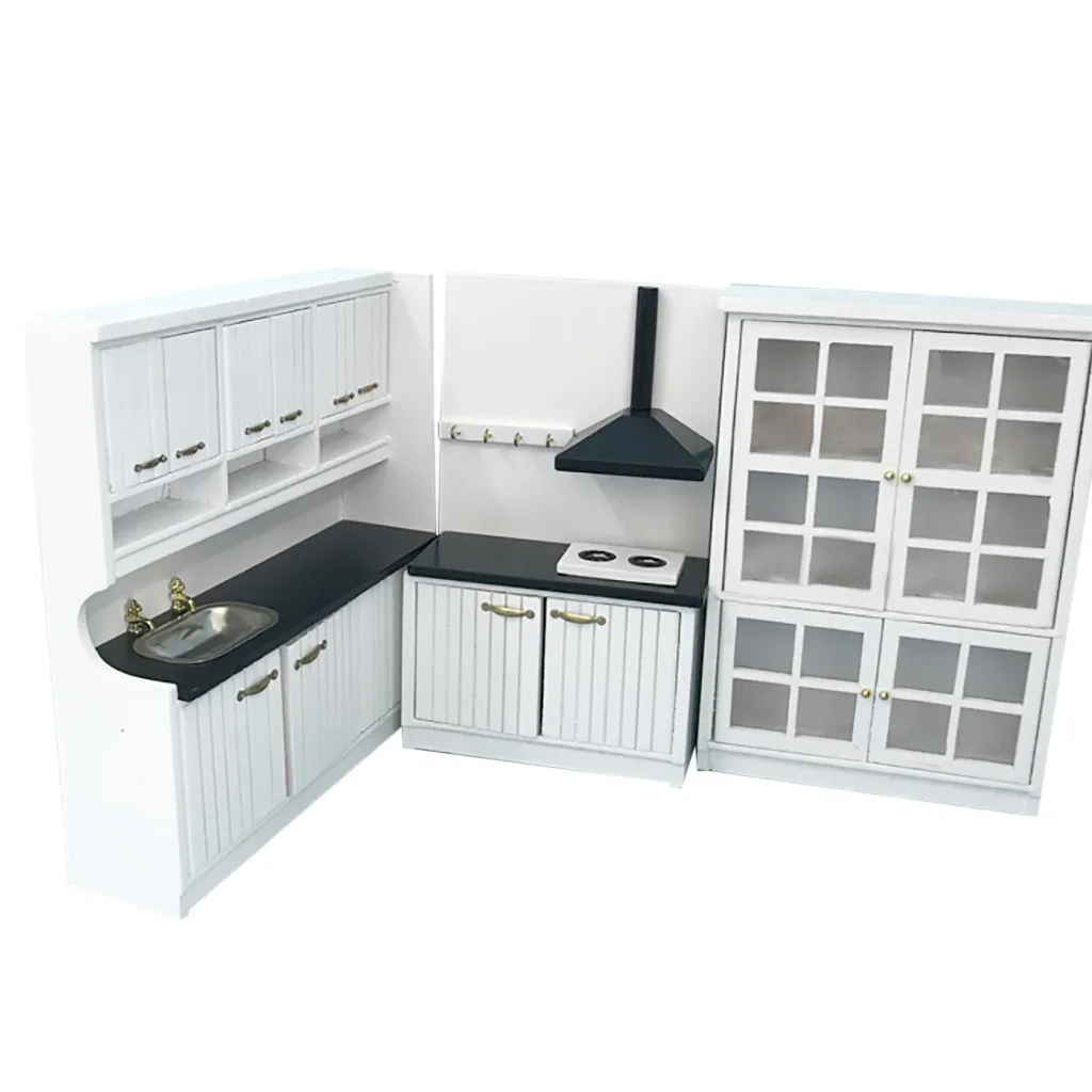Основной материал: дерево Четырехдверный шкаф: ширина 12.3x высота 18.5x толщина 3,5 см Кухонная раковина: ширина 16.5x высота 18.5x толщина 4,7 (в см) Кухонный вытяжной шкаф: ширина 11x высота 18.5x толщина 4,7 (в см) Вес: 650 г/компл.Посылка Содержание:
