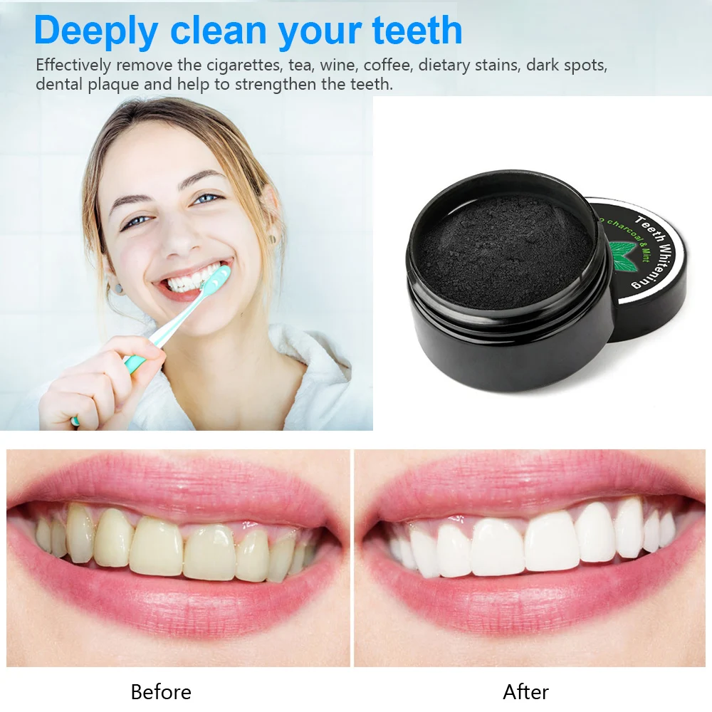 Удобный в использовании, сделать зубную щетку слегка влажный, корпус с двухрядным расположением выводов порошок, Чисти зубы 2-3 минуты мягко и краску, Чисти зубы при регулярном зубной пасты, чтобы очистить черный остаточный порошок, наконец-то тщательно краску в рот.
