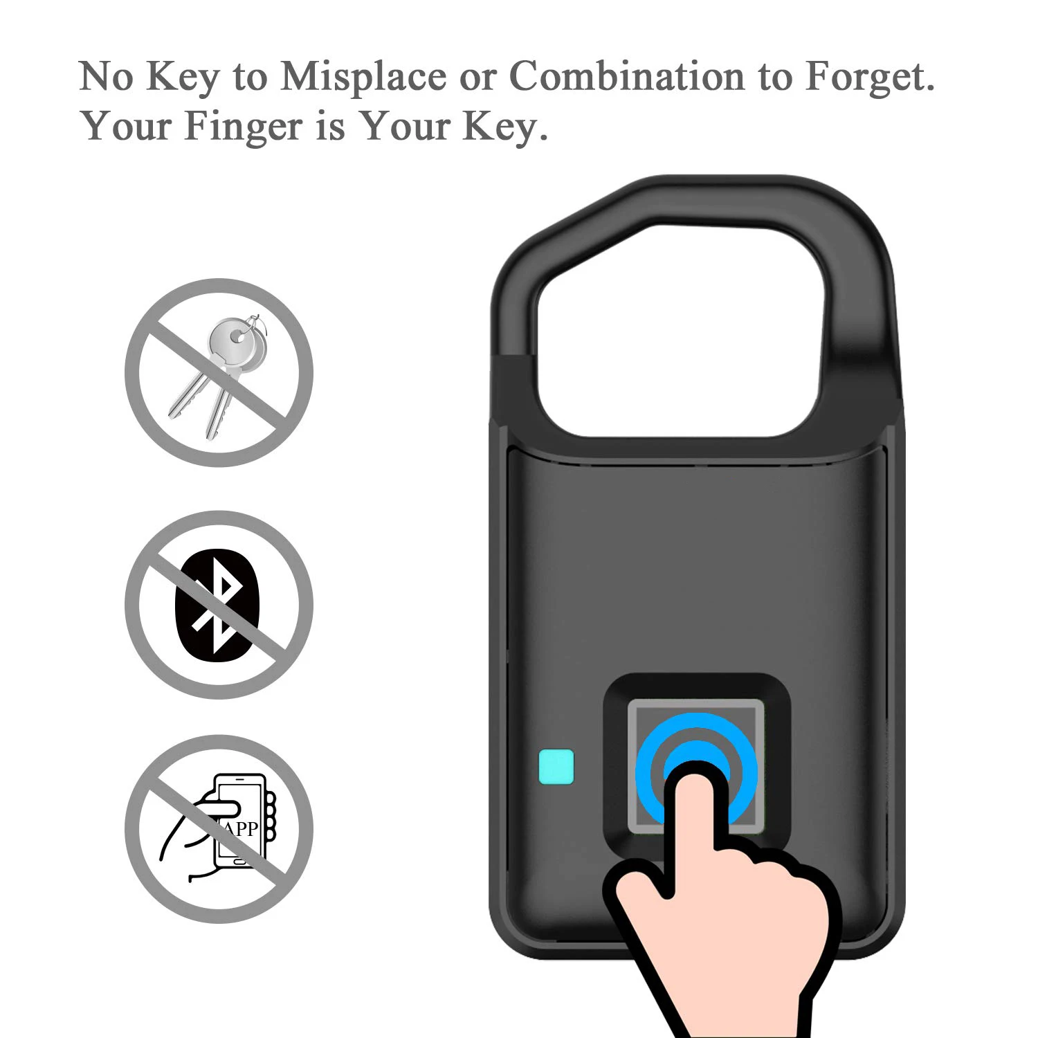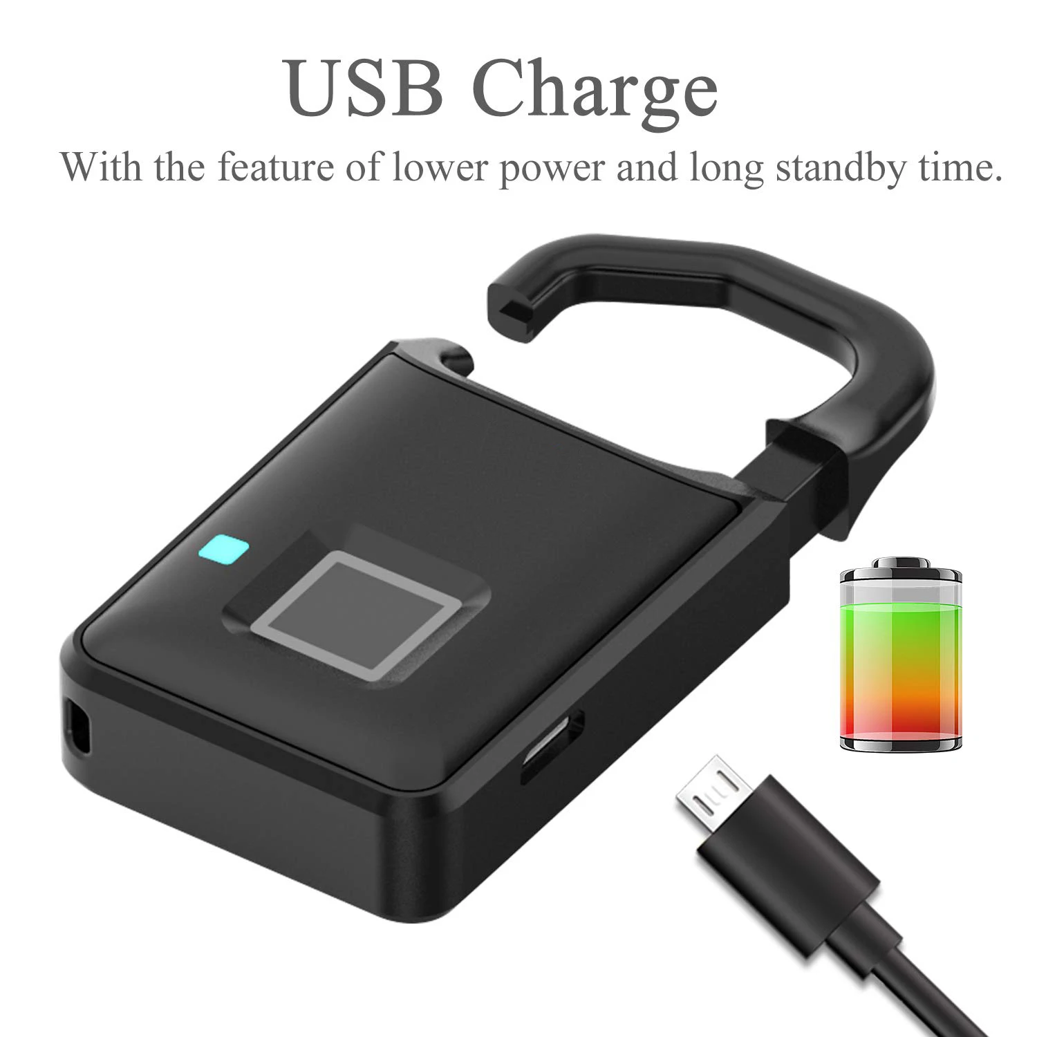 Вы можете открыть новый замок любым вашим пальцем, когда он не запрограммирован, поэтому, пожалуйста, убедитесь, что ваш отпечаток пальца был успешно записан перед использованием. Навесной замок с отпечатком пальца отличается низким энергопотреблением и длительным временем работы в режиме ожидания. С 1 литий-полимерным аккумулятором 80 мА · ч, самое длинное Время в режиме ожидания может служить в течение 4 месяцев. Продукт может быть разблокирован при экстренной ситуации-он может быть разблокирован по отпечатку пальца непосредственно при зарядке.