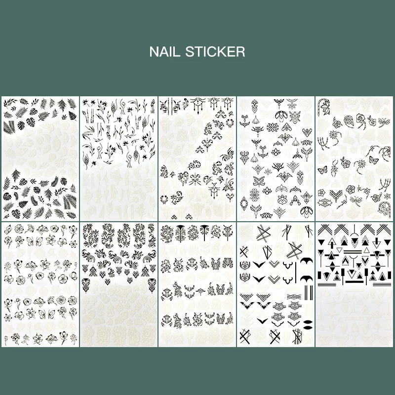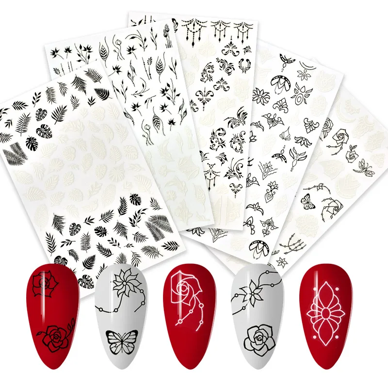100% абсолютно новые и высококачественные украшения для ногтей легко наносятся на натуральные или искусственные ногти Спецификация: количество: 1 лист Размер: прибл. 12,1x7,5 см узор: цветочный лист с линейной рельефной волной с гравировкой цветок кружево ювелирное ожерелье Цвет: черный белый дизайн: 3D клейкая наклейка комплектация: 1 лист 3D наклейка для ногтей