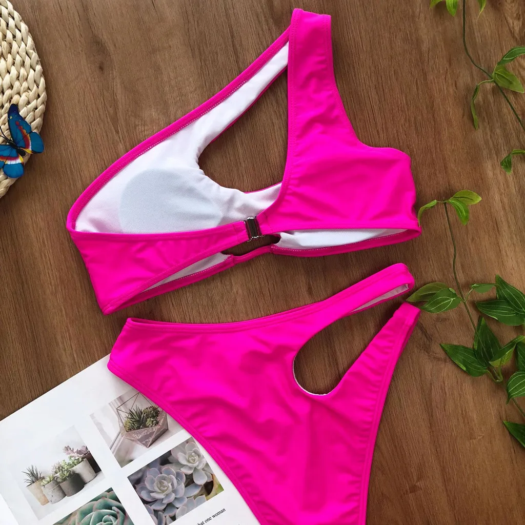 Женский модный сексуальный костюм бикини на одно плечо с разрезом