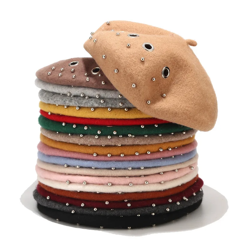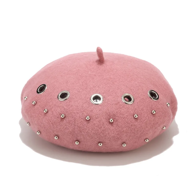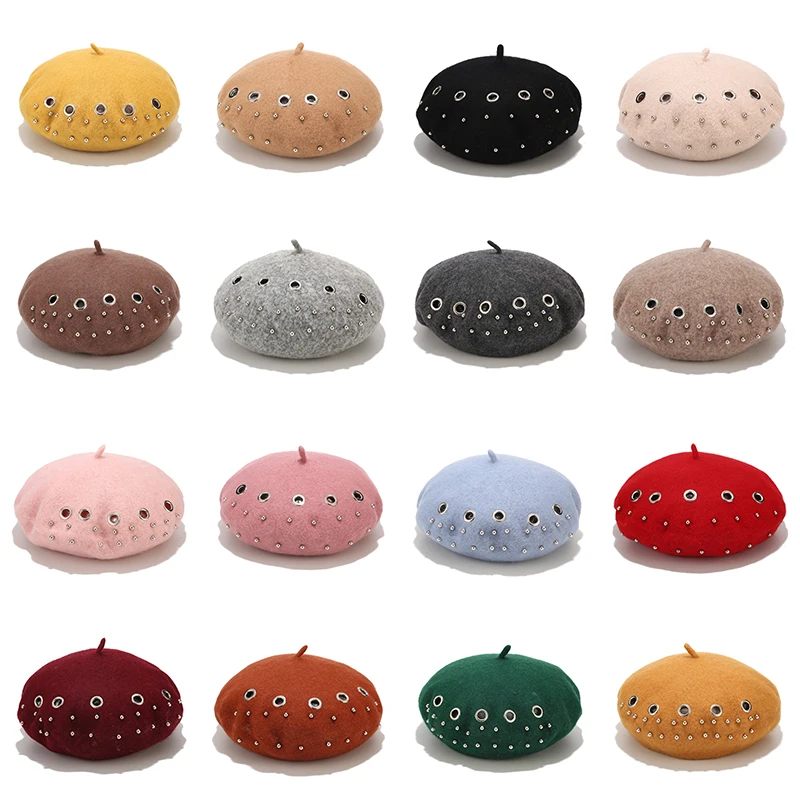 Женский шерстяной берет из металла в стиле панк с заклепками, Зимняя кепка в стиле ретро