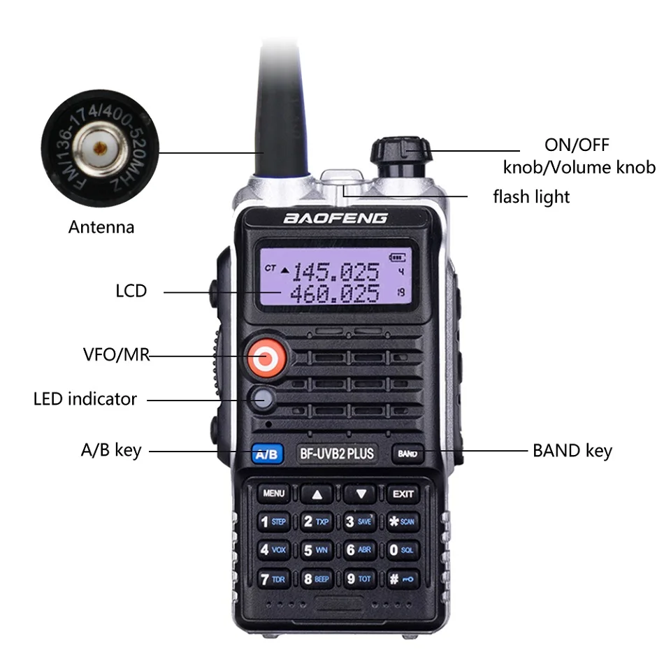 -Двухдиапазонный портативный трансивер с функцией отображения меню на дисплее «LCD»