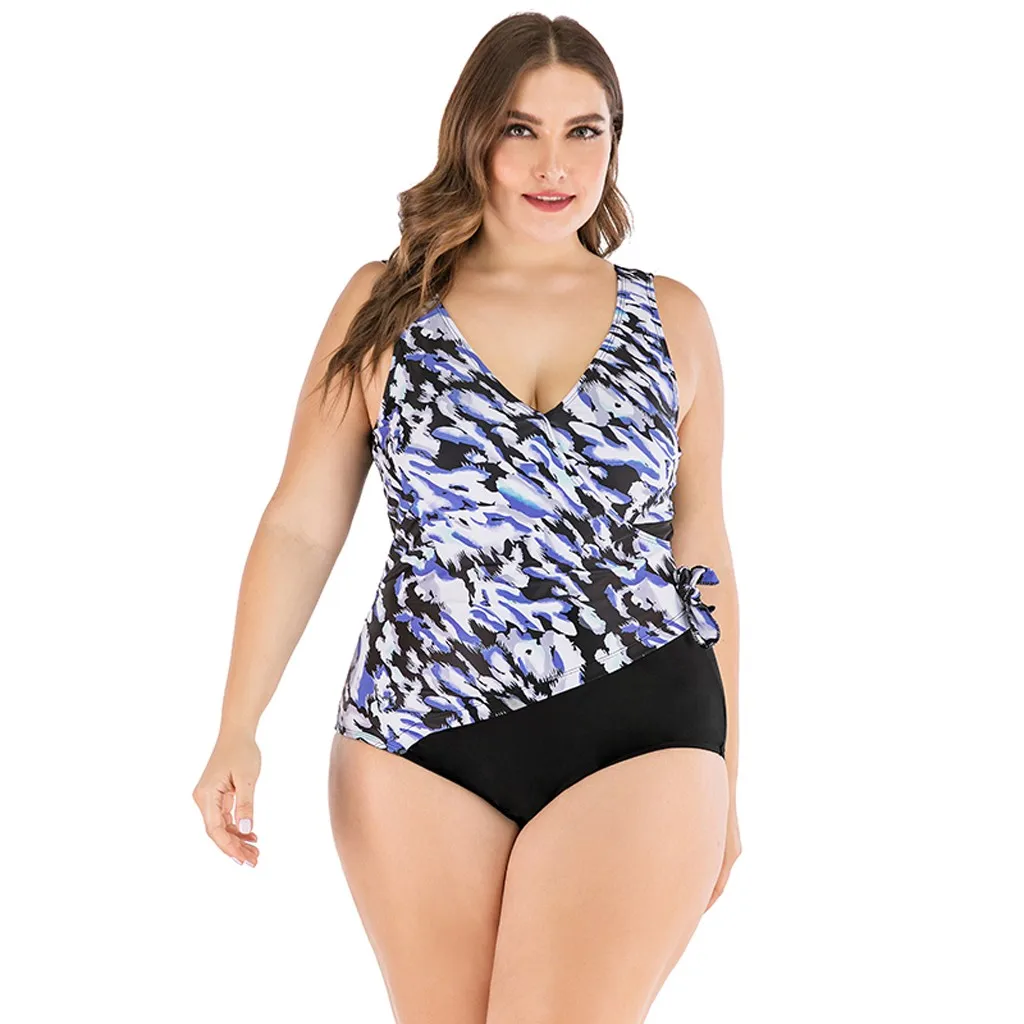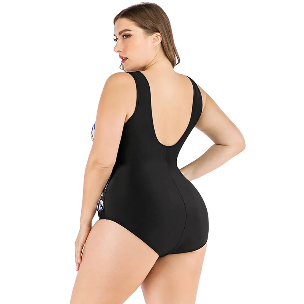 Женский сексуальный цельный купальник бикини размера плюс с v-образным вырезом и открытой спиной