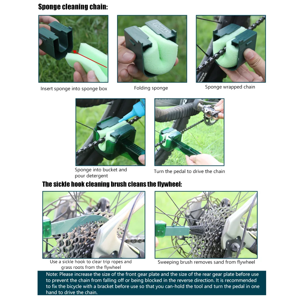 * 2.шайба цепи доступна с губкой и мягкой щеткой. Если цепь Слишком жирная, вы можете использовать мягкую щетку для очистки.