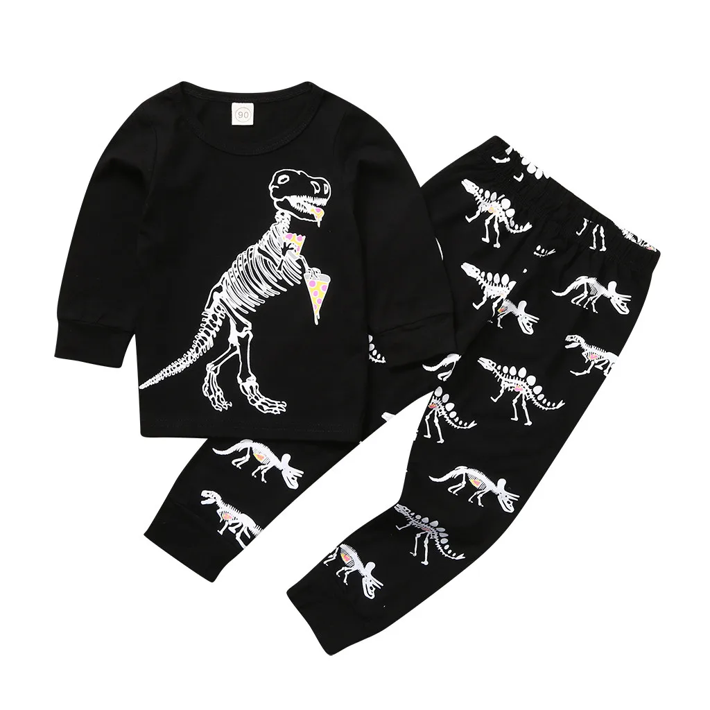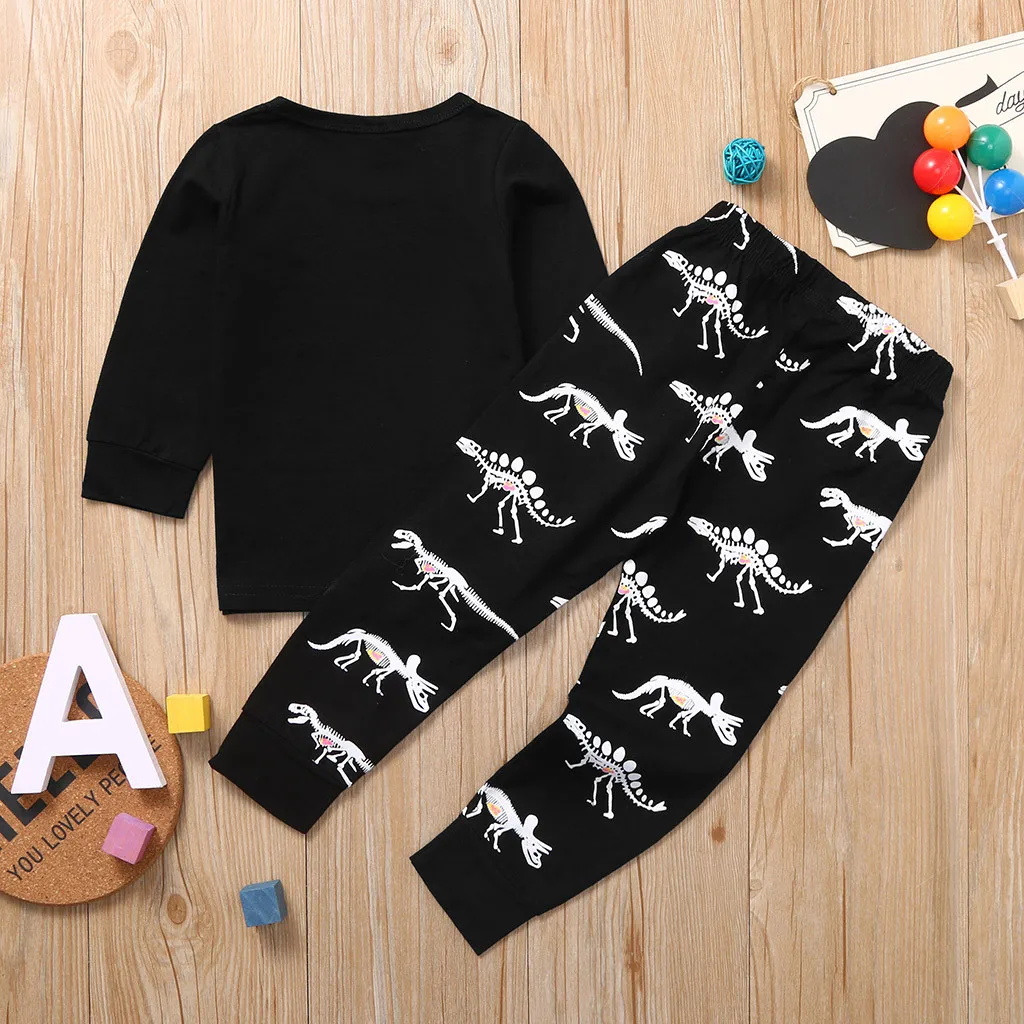 Детская футболка с динозавром из мультфильма для маленьких мальчиков, топ + штаны, пижама, одежда для сна, комплект одежды