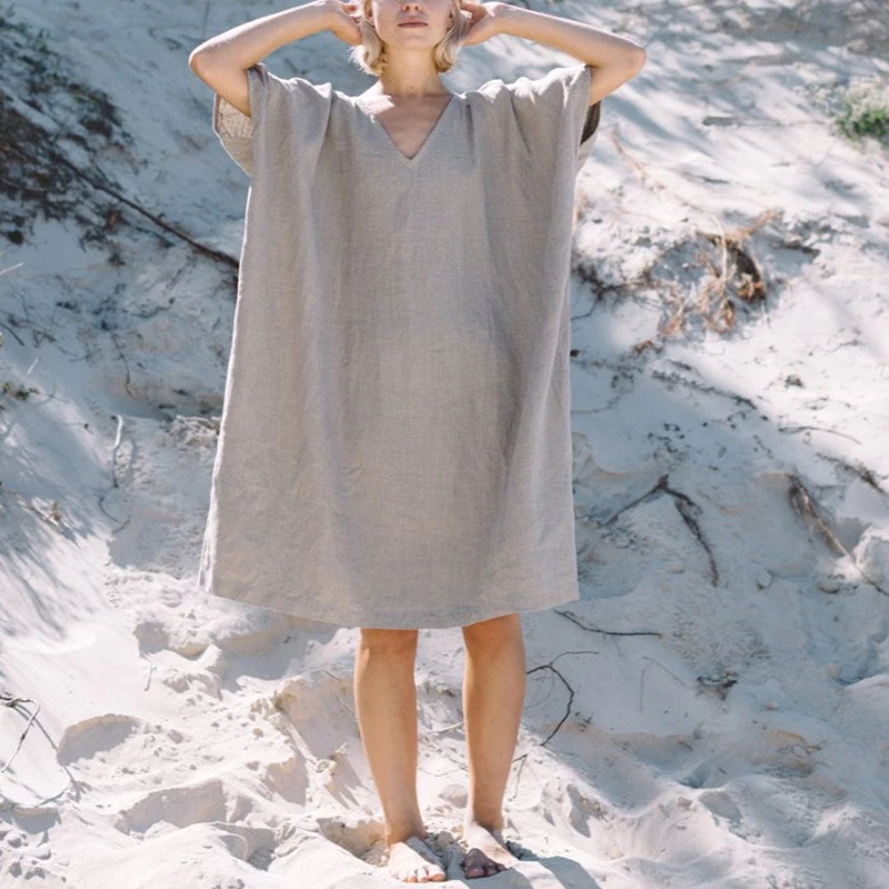 2020 Весенняя женская макси платье хлопковые футболки с короткими рукавами и v-образной горловиной свободные платья Женская Повседневная размера плюс, однотонное платье белого и серого цвета