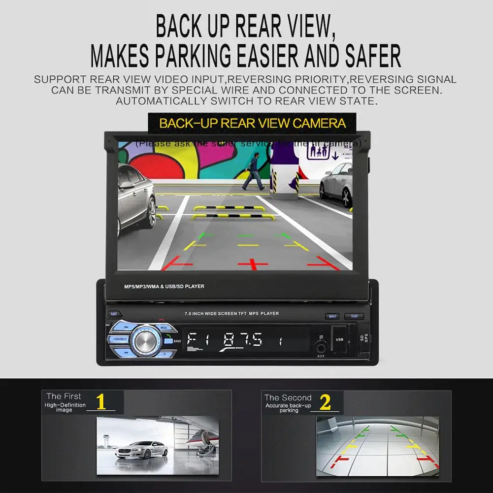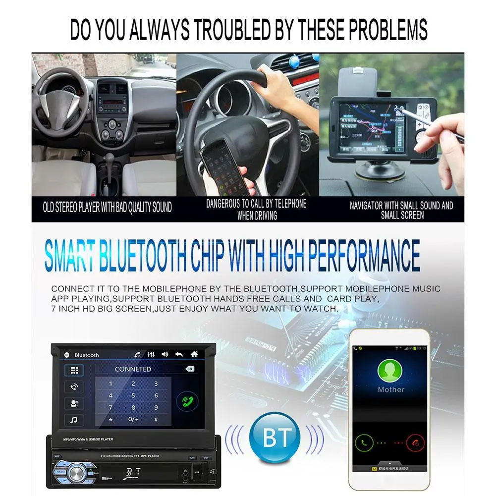7 "автомобильный MP5 плеер стерео RDS AM FM радио GPS навигация выдвижной 1 DIN сенсорный экран USB Bluetooth приемник 9601 Модернизированный 9602Особенности:1. Функция Bluetooth (ответ/телефонные звонки, воспроизведение музыки)2. Поддержка функцией заднего хода (камера 可选)3. Видео вход: Поддержка автомобиля DVR камера видео дисплей4. 7-дюймовый резистивный сенсорный экран может быть сложен5. RDS AM/FM радио6. Поддержка картридера, u-диска (аудио/видео/Воспроизведение изображений)7. Функция AUX8. Функция Bluetooth9. Улучшенный микрофон, более четкий телефонный звонокТехнические характеристики:Модель: 9601 обновленнаяТип: MP5 плеерСистемы: winceДекодер чип: C200Размер экрана: 7 дюймов резистивный сенсорный экранРазрешение экрана: 1024*600Кнопка светильник: в наличии 7 цветов, светильникСистема времени: 12 часов/24 часа системы РегулируемыйВремя работы в режиме ожидания: не поддерживаетсяМобильный телефон: Поддержка AndroidМобильный телефон зарядка: Поддержка Android мобильный телефон зарядкаРадиосвязь: FM1/FM2/FM3/AM1/AM2Радио чип: QN8035RDS: ПоддержкаOBD: не поддерживаетсяМульти-Язык: китайский/английский/испанский/португальский/русский/итальянский/немецкий/французский/Польский/ТурецкийВидеовыход: 2 канала видеовыхода (не поддерживает двойной экран)Реверсивный Видео вход: ПоддержкаМетод обнаружения заднего хода: Обратный светильник, подключенный к источнику заднего ходаТВ: не поддерживаетсяПароль подключения Bluetooth: для нескольких мобильных телефонов может потребоваться пароль, пароль: 0000Настройка логотипа: не поддерживаетсяФункция напоминания о тормозе: ПоддержкаФункция управления рулем: ПоддержкаBluetooth: версия Bluetooth 4,0Чип усилителя: TDA7388Радиочастота: 87,5 ~ 108,0 МГц, 522 ~ 1620 ГцСлот для карты памяти: для карты памяти TF (не входит в комплект)USB порт: 1 x USB2.0Кнопка сброса: не поддерживаетсяОригинальный Автомобильный руль управления: ПоддержкаRCA терминал Введение: 2 канала видео выход, 1 канал Реверсивный вход 2 канала аудио выход, 1 канал видео входПередний aux аудио вход: поддержкаРегулятор громкости: ПоддержкаПоддерживаемые Аудиоформаты: MP3/WMA/WAV/APE/FLACПоддерживаемые форматы видео: RM/RMVB/AVI/MP4/MKV/3GPПоддерживаемые форматы изображений: JPGВес: 1700 гРазмер: 184*158*50 ммПримечания:1. Дисплей не выходит автоматически. Вам нужно вручную нажать или потянуть.2. Если размер установки автомобиля стерео и размер машины совпадают, он может быть установлен и использован.3. При установке машины убедитесь, что провод правильно подключен. Если установка не работает на машине, Пожалуйста, подключите красный провод и желтый провод к положительному полюсу источника питания 12 В, черный провод к отрицательному полюсу источника питания, попробуйте проверить, может ли машина нормально включаться. Если он может быть включен нормально, то это может быть из-за проблемы с проводкой, вы можете обратиться за нашей помощью, чтобы вы могли лучше использовать продукт.Комплектация:1 х Автомобильный MP5 плеер1 x дистанционный пульт1 х Кабель питанияРуководство пользователя (1 шт.)1 x GPS модуль (опционально)1 камера (опционально)