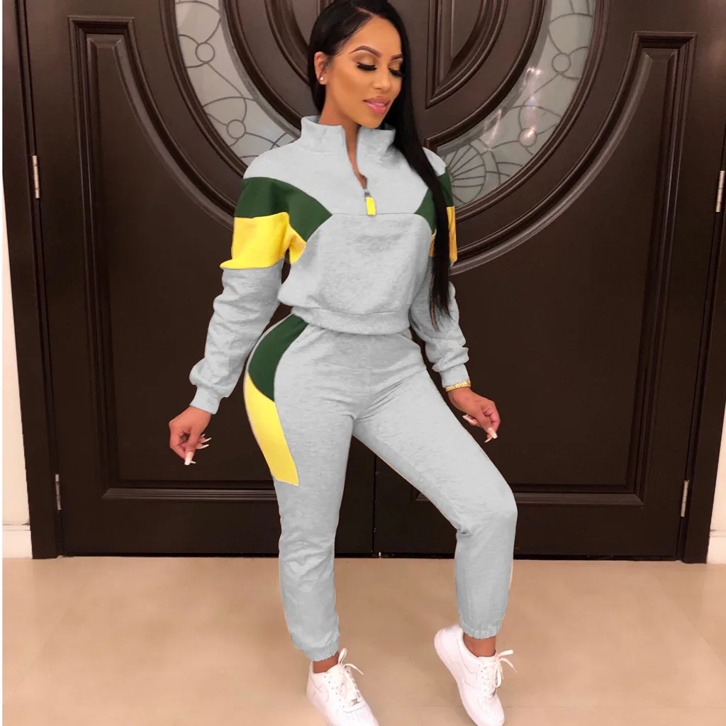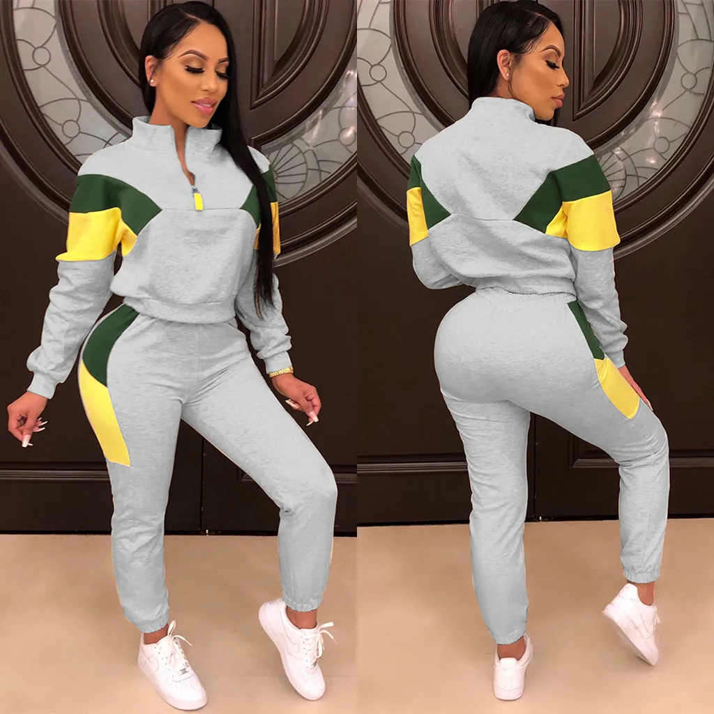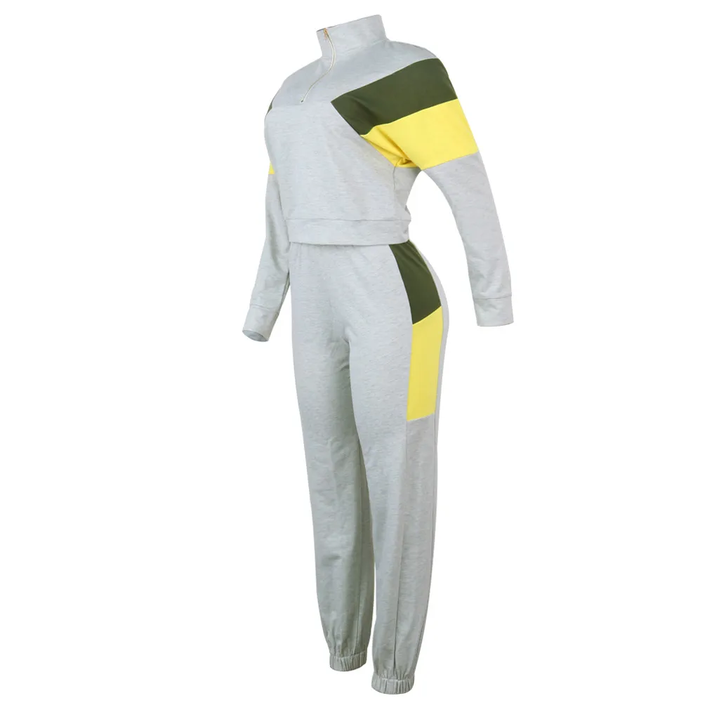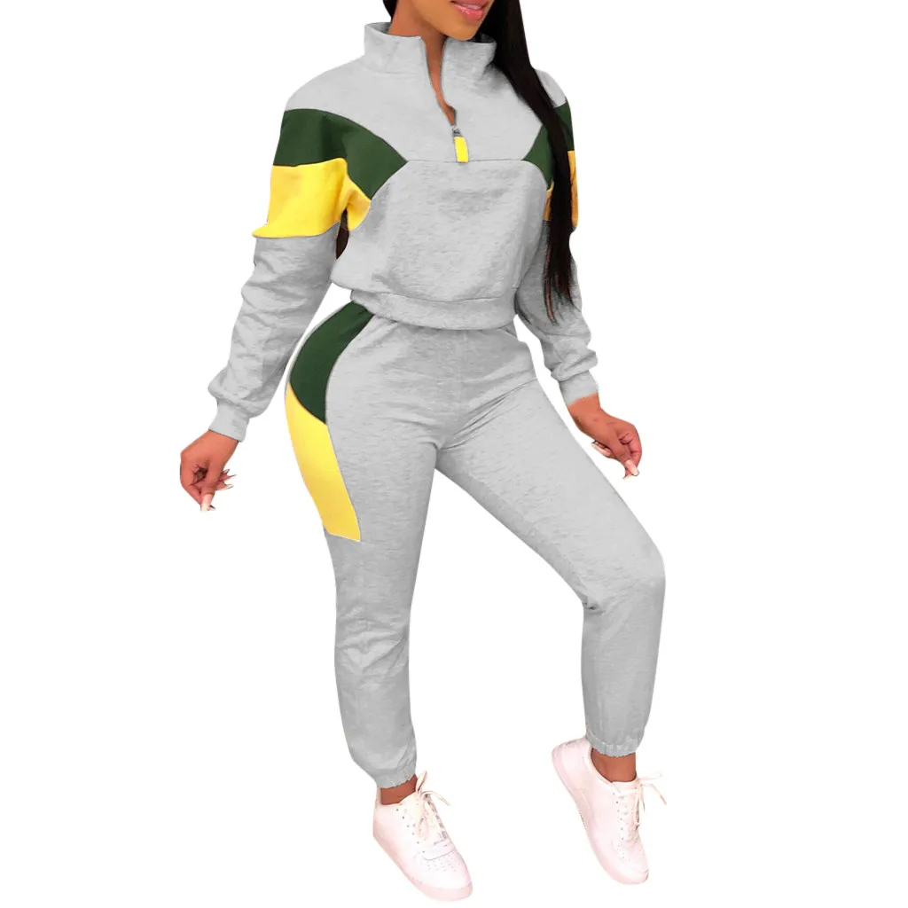 Женский костюм с длинными рукавами, блузка на молнии с пэчворком + длинные штаны
