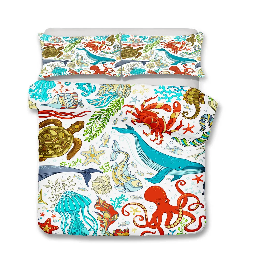 Комплекты постельного белья с изображением подводных животных, дельфин, морская черепаха, наволочка, мультяшный осьминог, морская звезда, набор пододеяльников, 100% микрофибра