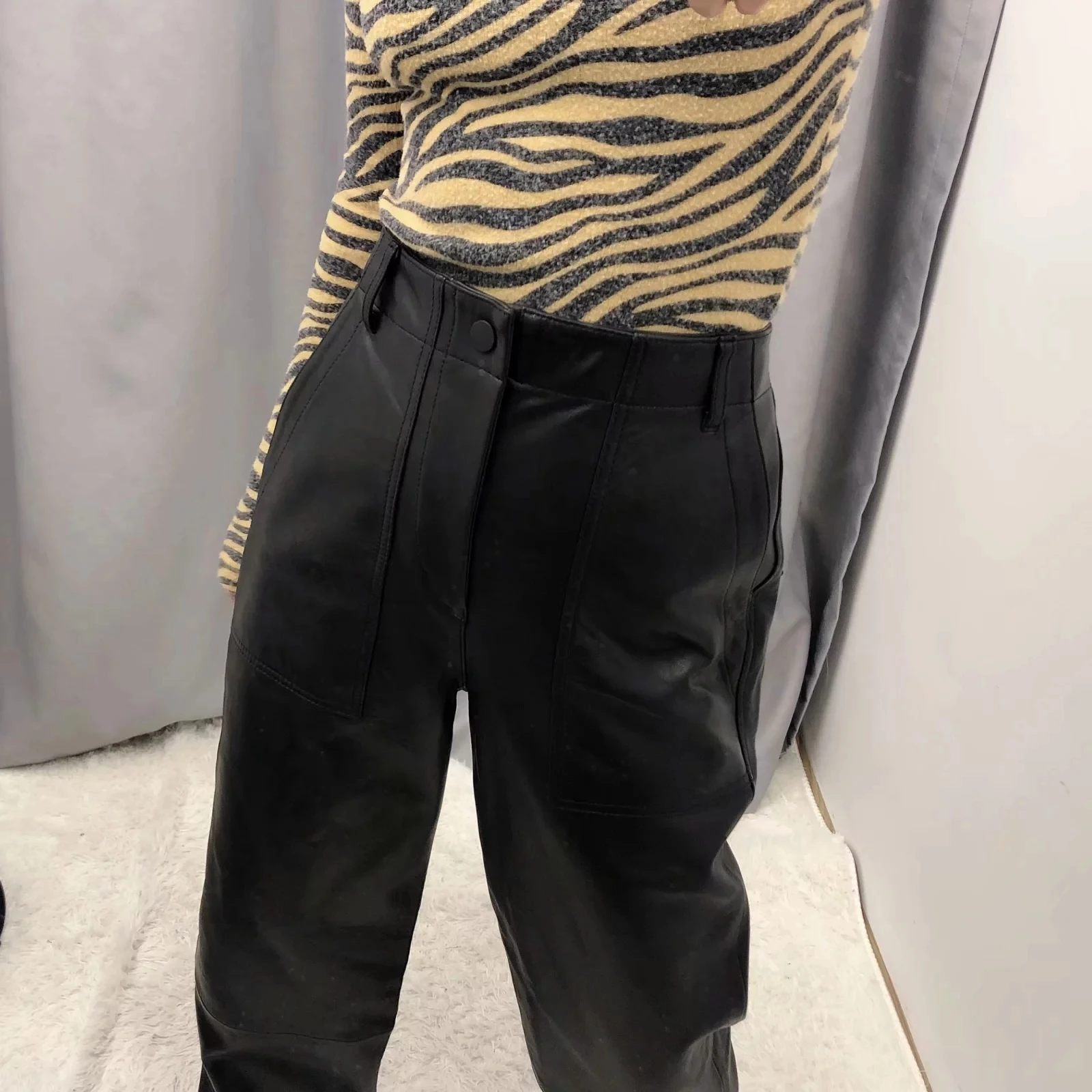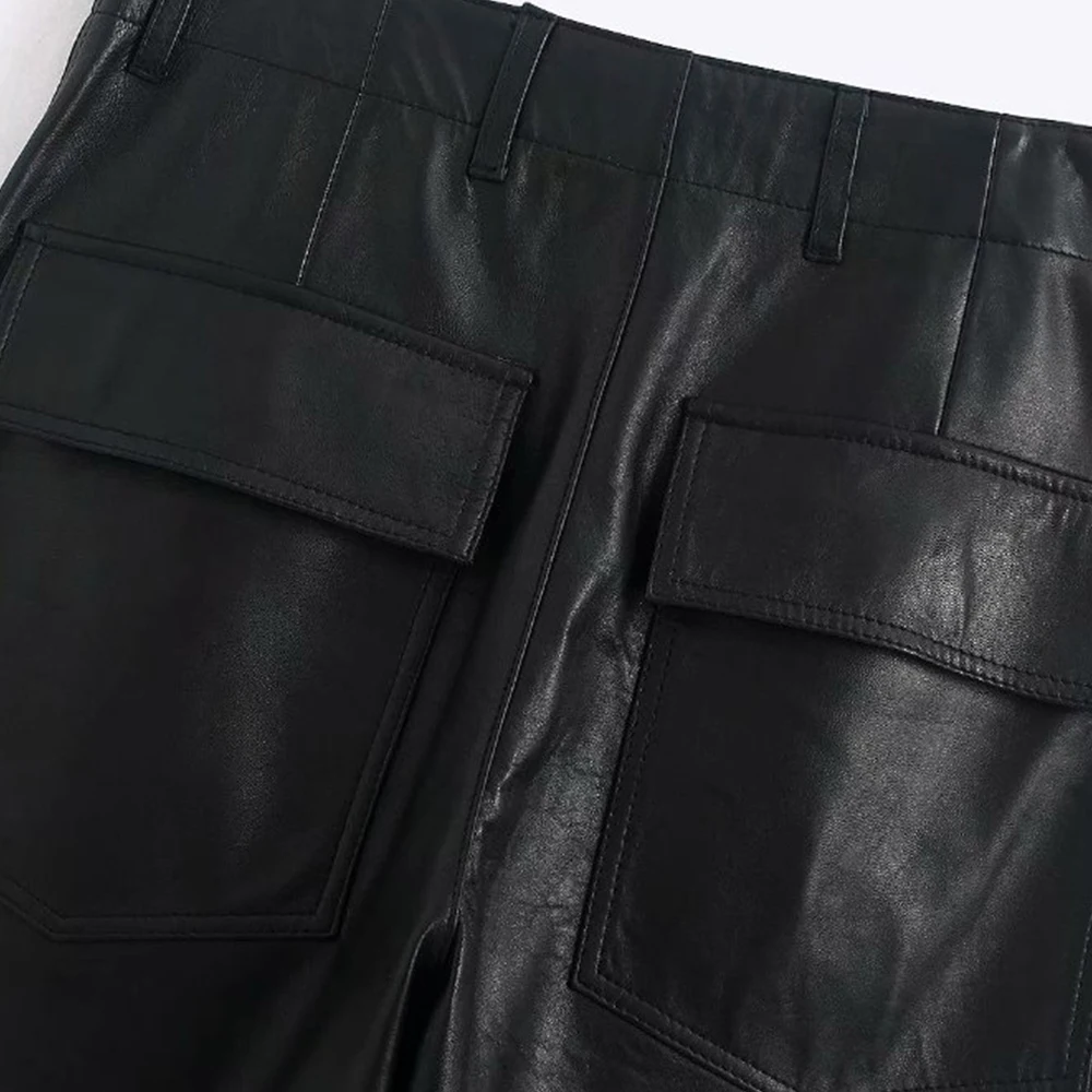 Женские прямые брюки из искусственной кожи с высокой талией zora vicky, повседневные свободные брюки из искусственной кожи, женские стильные зимние спортивные брюки za