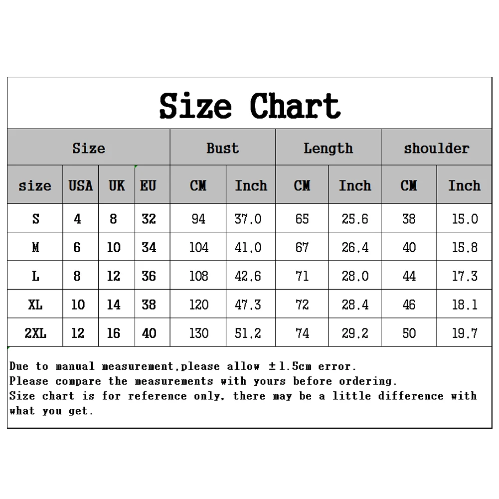 [Наш Размер S] Обхват груди: 94 см/37,0 дюйма, длина: 65 см/25,6 дюйма, ширина плеч: 38 см/15,0 дюйма (прибл.)