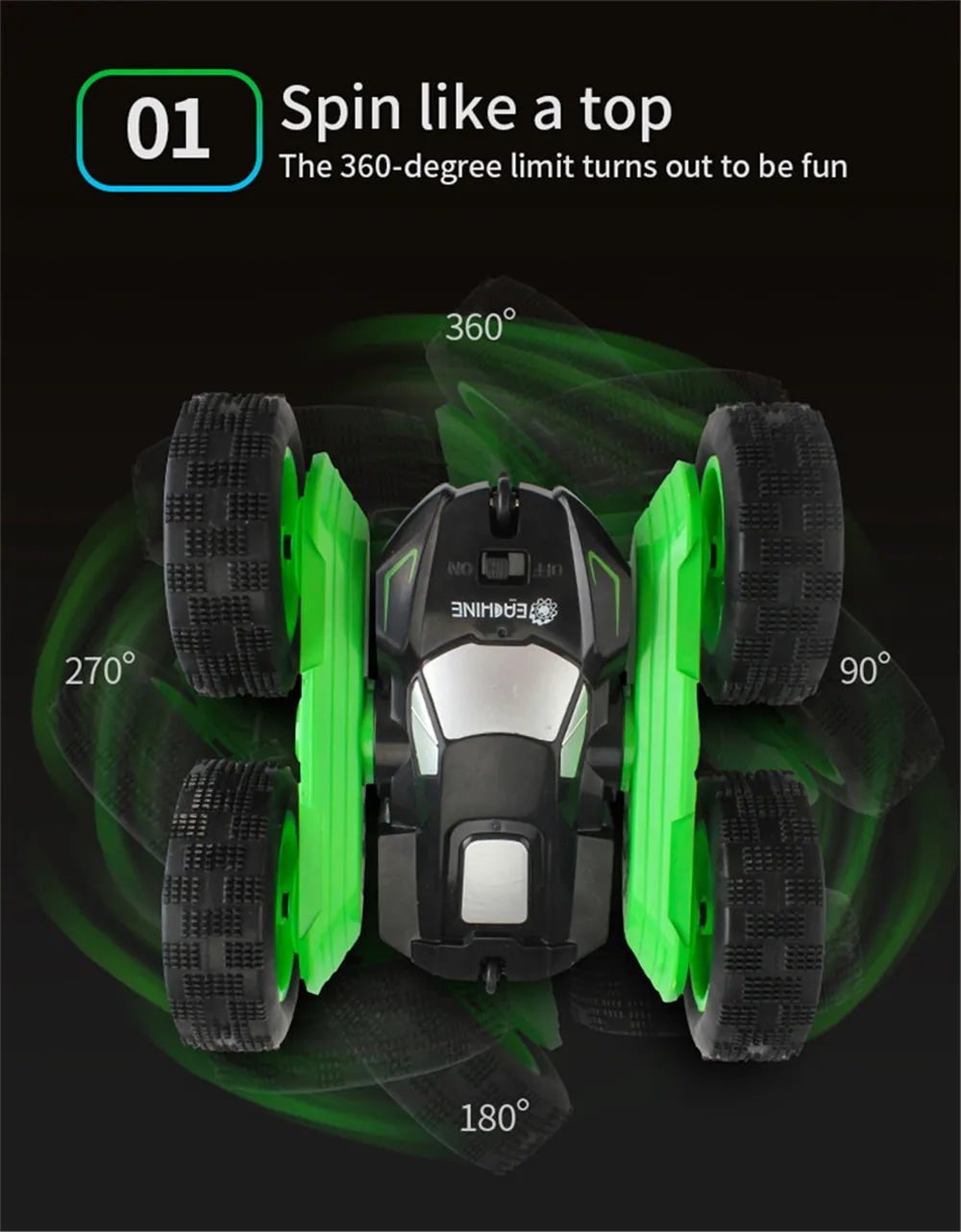 Каскадер имеет различные крутые движения, он может вращаться на 360 градусов влево и вправо, или шина и корпус могут поворачиваться на 360 градусов отдельно. На высокой скорости инерция может быть использована для катания и установки каскадера. Ждать различные специальные эффекты.