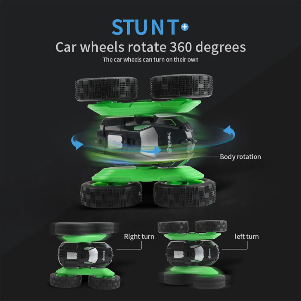 1:24 масштабе, уникальный двухсторонний дизайн корпуса, корпус оснащен специальным трюковым роликом, который может сделать автомобиль выполнять многоугольные трюки, такие как Вертикальная эрекция, вращение на 360 градусов, И препятствия, вызванные препятствиями после перехода, вы все еще можете ездить;