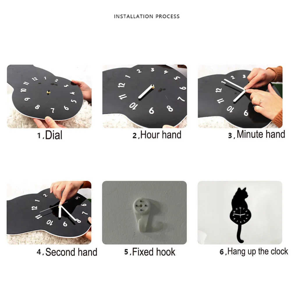 Акриловые креативные настенные часы с изображением милого кота из мультфильма, домашний декор, часы с хвостом