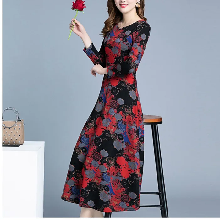 Тип одежды: женское платье с цветочным принтом и длинными рукавами; Праздничное длинное платье с поясом на талии