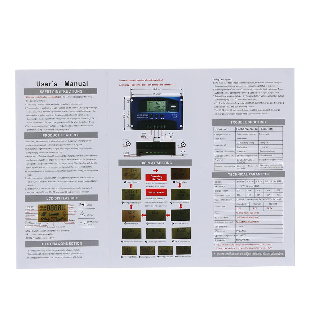Этот MPPT контроллер имеет идеальную функцию SOC, контроль заряда тока и питание к нагрузкам.