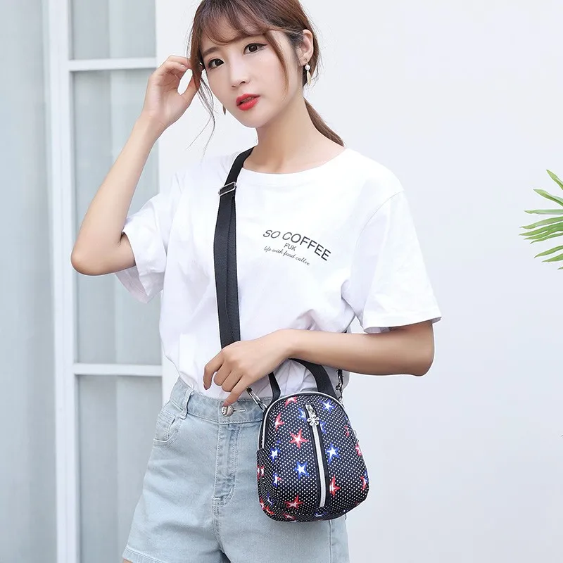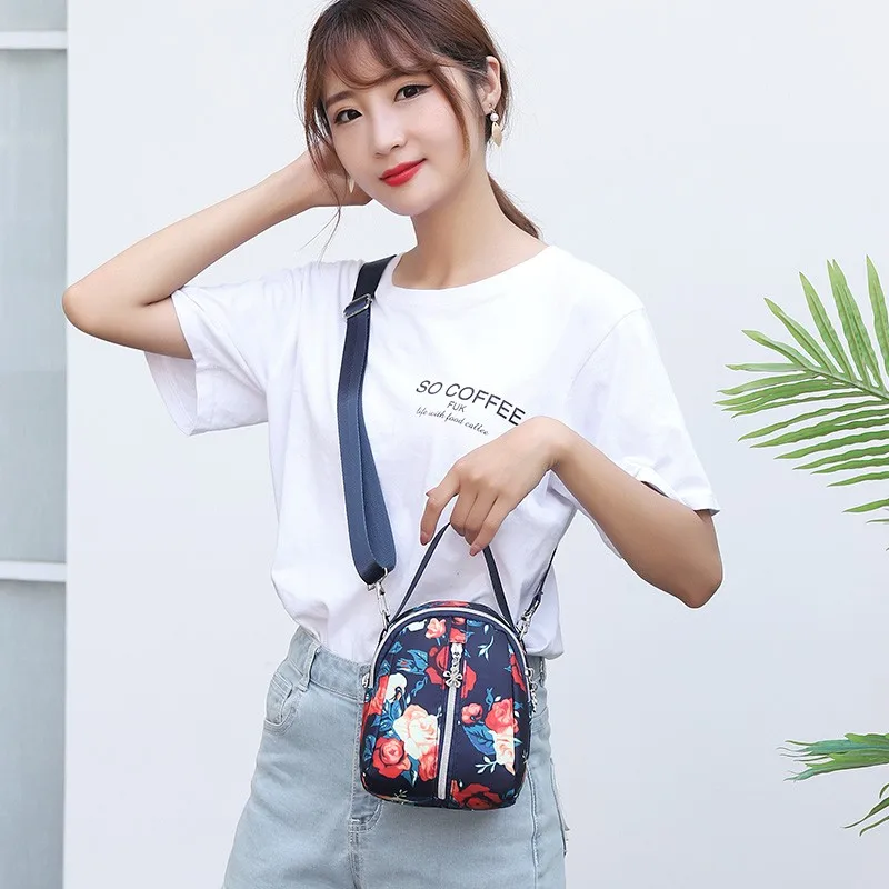 Женская нейлоновая сумка-тоут с принтом, Повседневная сумка через плечо, портативный чехол для телефона