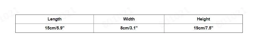 Размеры:15См (Д) x8см (Ш) x19см (В)/5,9 (Д) x3.1 (Ш) x7.5 (В)"