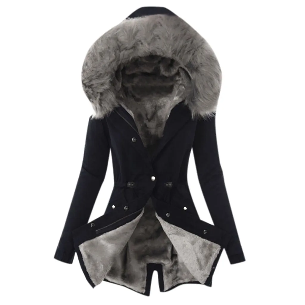 Пальто размера плюс, женская зимняя теплая Толстая длинная куртка, осеннее пальто, однотонное хлопковое пальто с подкладкой, Manteau Femme HiverОсобенности: