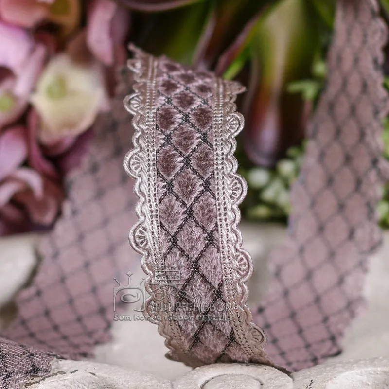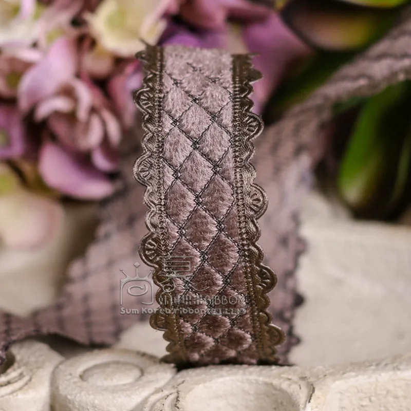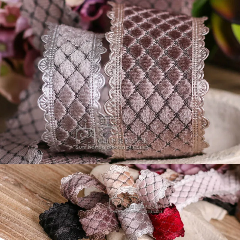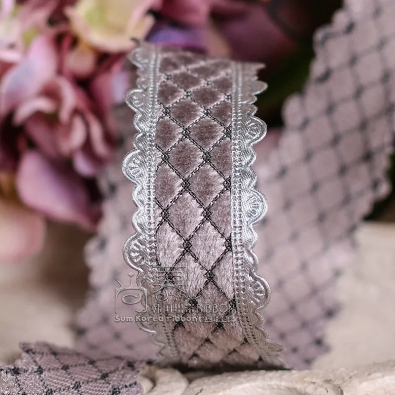 Наименование: бархатная лента в клетку со стразами край пикота