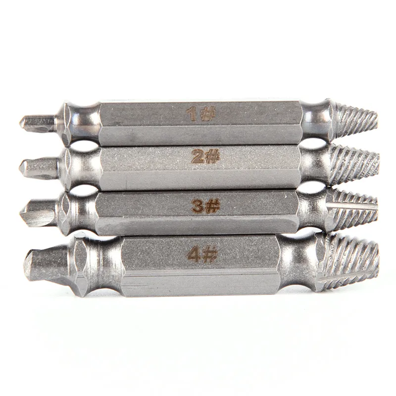 100% новый и высокое качество 4 шт. винт и болт экстрактор сверла и направляющий набор, сломанный комплект легкой крепежной детали Удаляет любой винт или болт! (phillips, плоский, шестигранный, окрашенный и многое другое) Прочная конструкция из закаленной стали Быстрый и простой в использовании Работает с любой дрелью Удаляет любой зачищенный винт за 10 секунд или меньше Даже работает на неровных, неровных или грубых разрывах Самоцентрирующийся наконечник, без ходьбы Совместимые с быстроразъемными патронами Размер: 1 #,2 #,3 #,4 # Длина/педикюра задняя часть: около 5,0 см/1,97