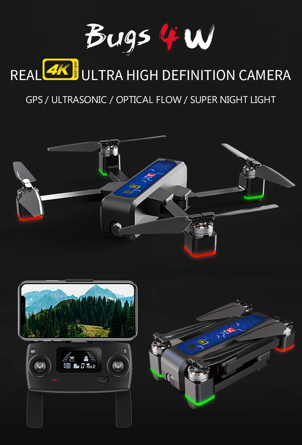 MJX Bugs 4W B4W gps Радиоуправляемый Дрон с настоящей камерой 4K HD, антивибрационный оптический поток, бесщеточный 5g, wifi FPV, складной Квадрокоптер, Дрон 1,6 км