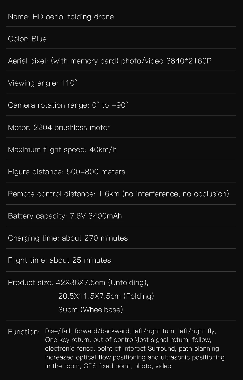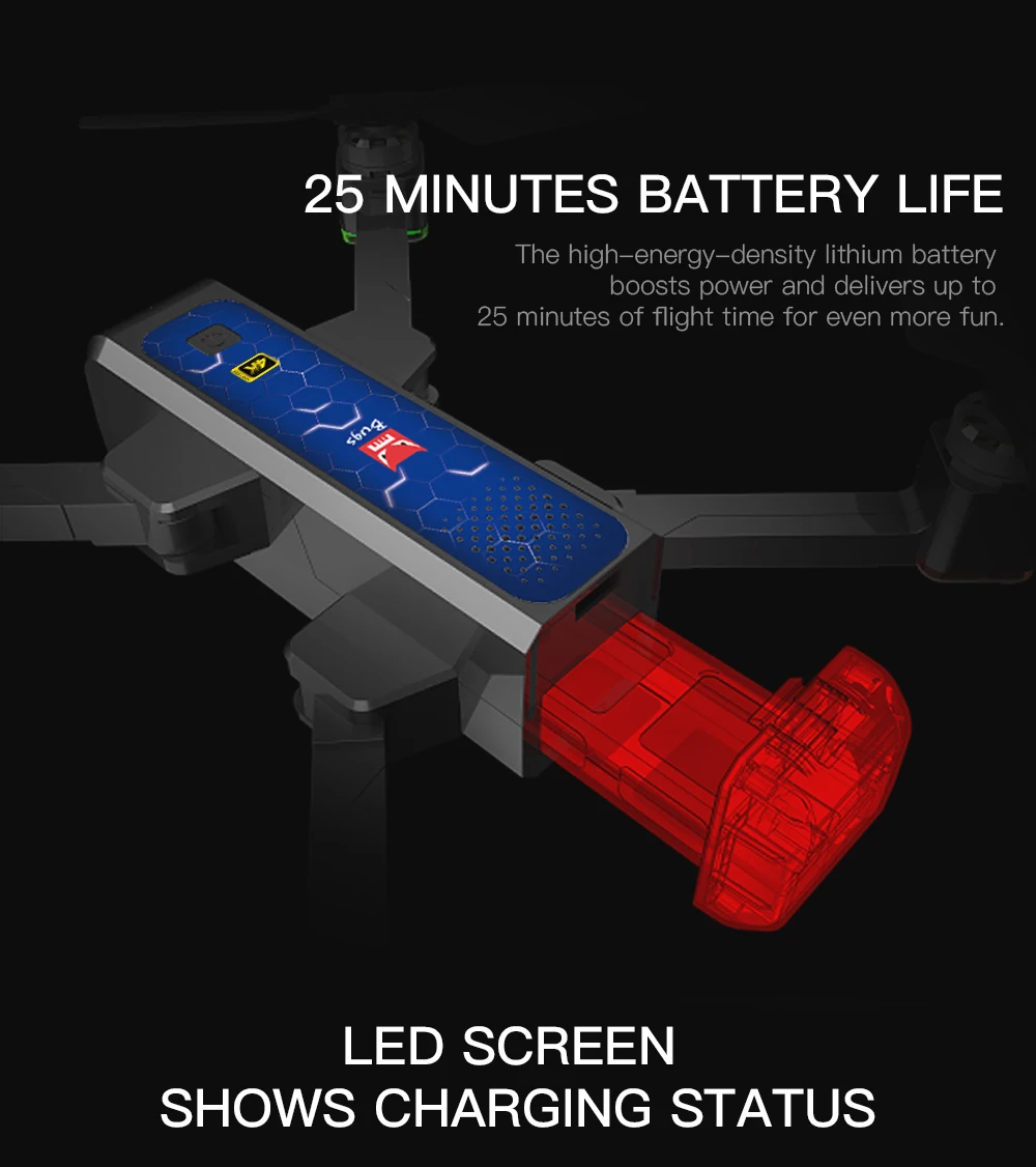 Размер дрона: 20,5x11,5x7,5 см (в разложенном виде)