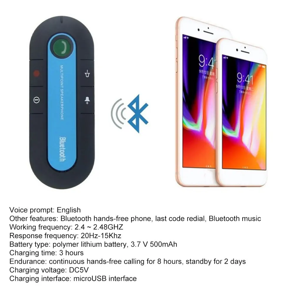 Этот портативный мини-Bluetooth предназначен для удобства и свободы беспроводной связи и может использоваться в качестве автомобильного комплекта без рук во время вождения или в качестве настольного Конференц-громкоговорителя.