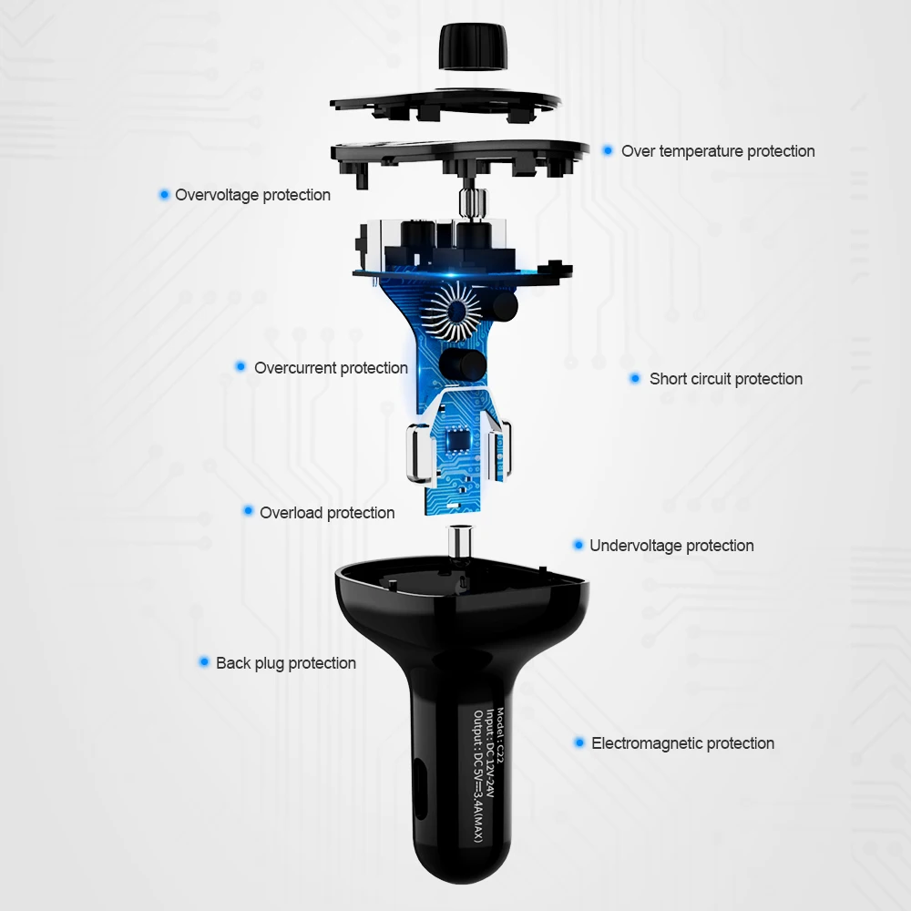 Двойной USB foot 3.4A с Умной идентификацией, быстрая зарядка.