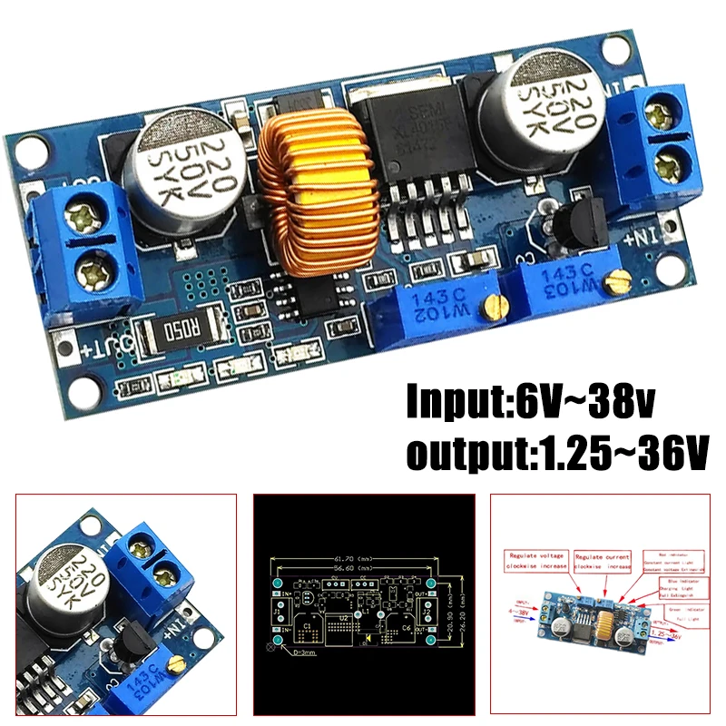 Диапазон выходного напряжения: 1,25-36 в DC Регулируемый