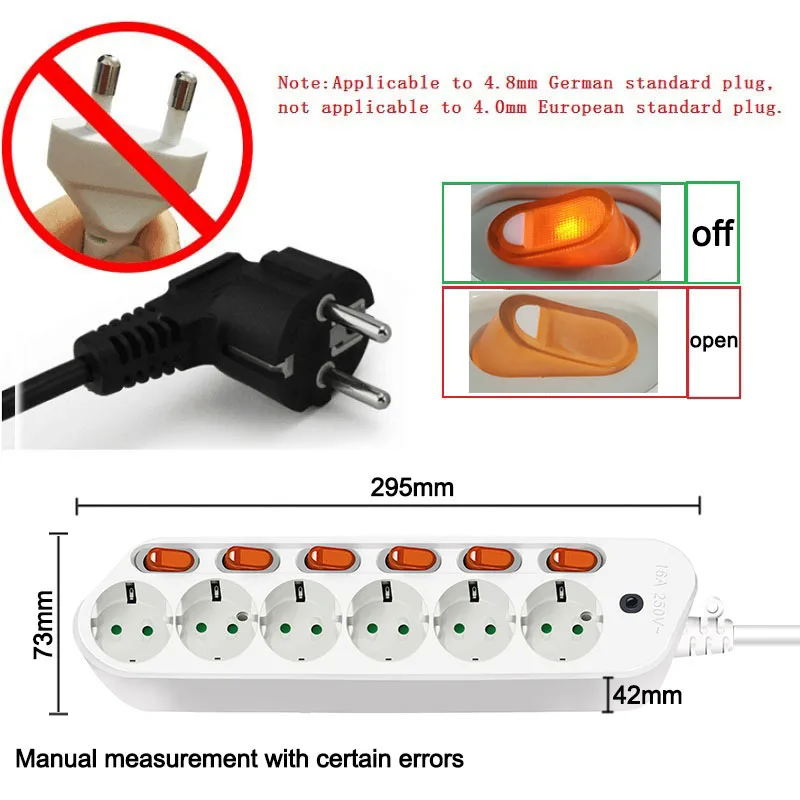 3. Защита детей двери: защита от детей сварочный satey двери, избегайте детских пальчиков или металлическими предметами вставлена в розетку, Электрическая безопасность, защита. 4. Отверстие для подвешивания: простой в использовании, повесив на розетка на стене, больше экономии пространства; Важное примечание: этот элемент подходит только для офиса. Компьютера. Холодильник. Рисоварка. Массажное кресло и другие бытовые и коммерческие виды применения и аналогичные.