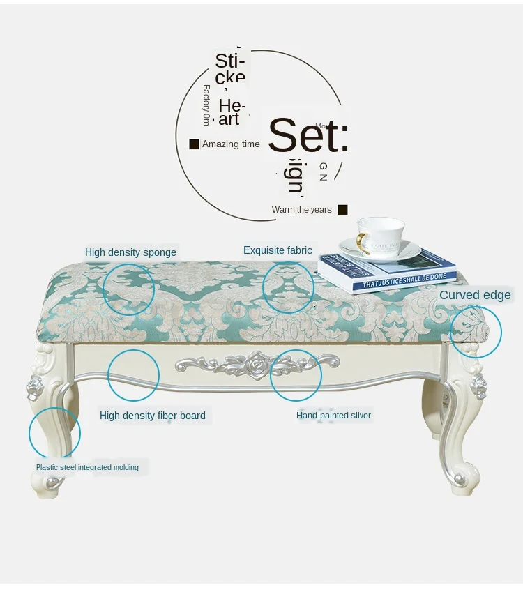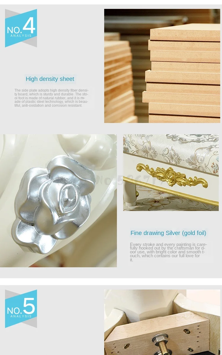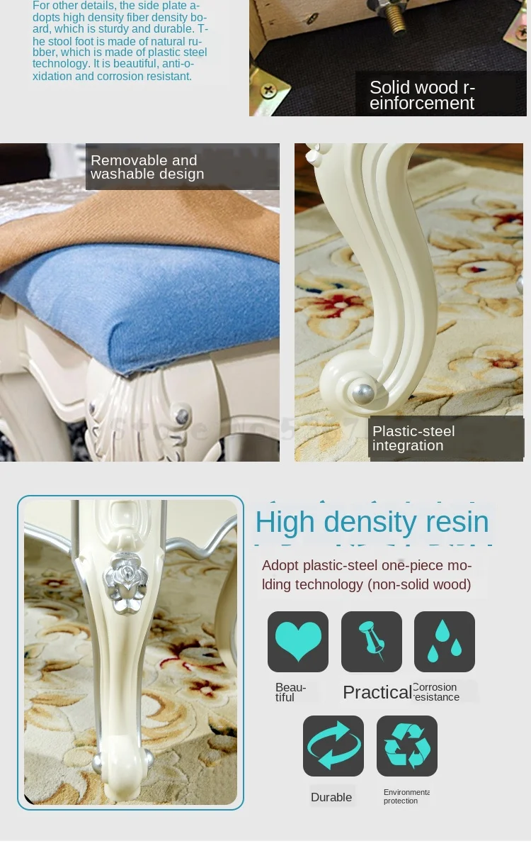 【发货明细】 拆装 + 组装脚 【专享服务】 全国各大城市免费到达,个别边远地区请联系客服. 【主材料】玫瑰雕花 + E1 级高密度板 + 凳脚高密度塑脂非实木 + 进口冰花绒 + 高密度海绵