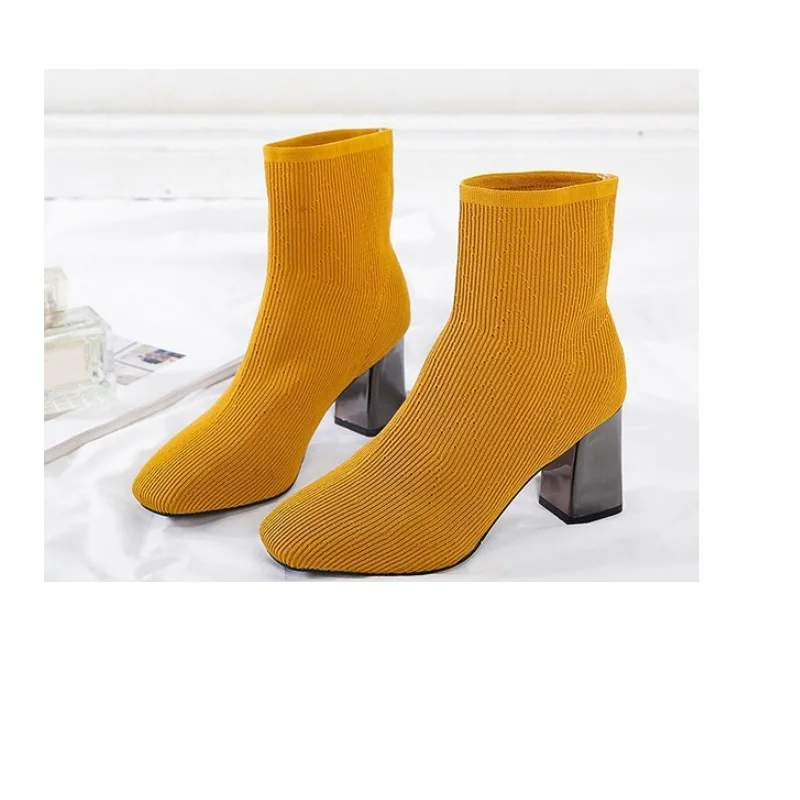Женские эластичные ботинки из флока; Короткие ботинки; Модные облегающие ботинки; Сезон осень-зима; Трикотажные носки из эластичной ткани; Ботинки для девочек