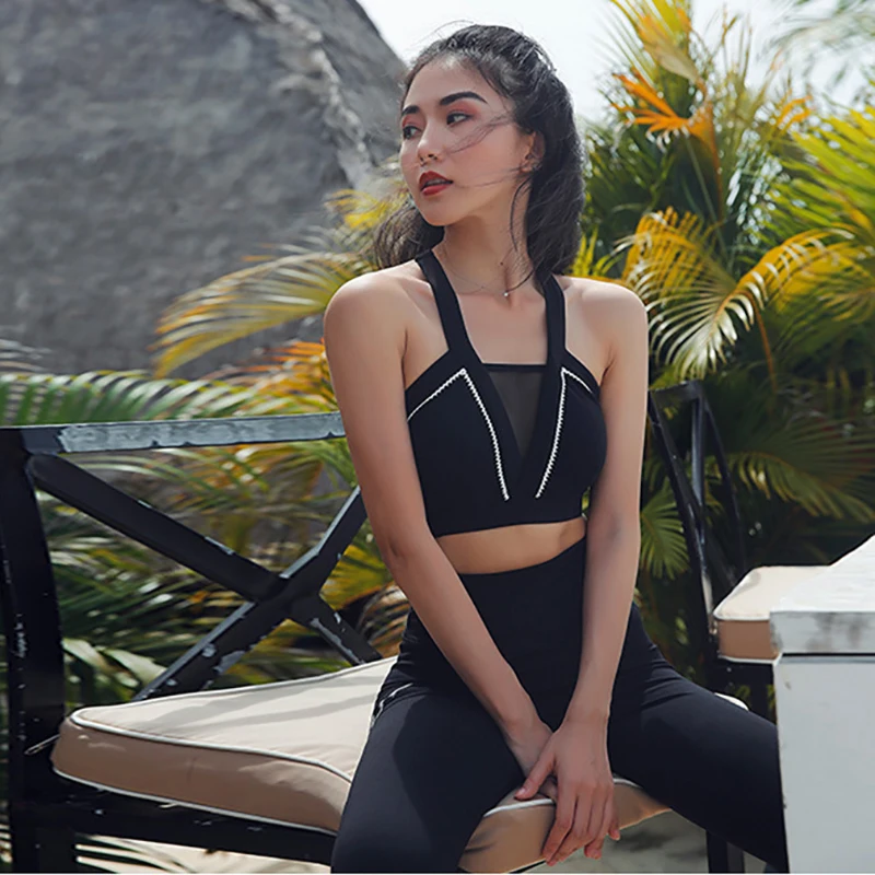 Женская спортивная одежда, комплект одежды из 2 предметов, штаны для йоги, высокая талия, пуш-ап, укороченные топы, 2020, новая одежда для женщин, спортивные костюмы