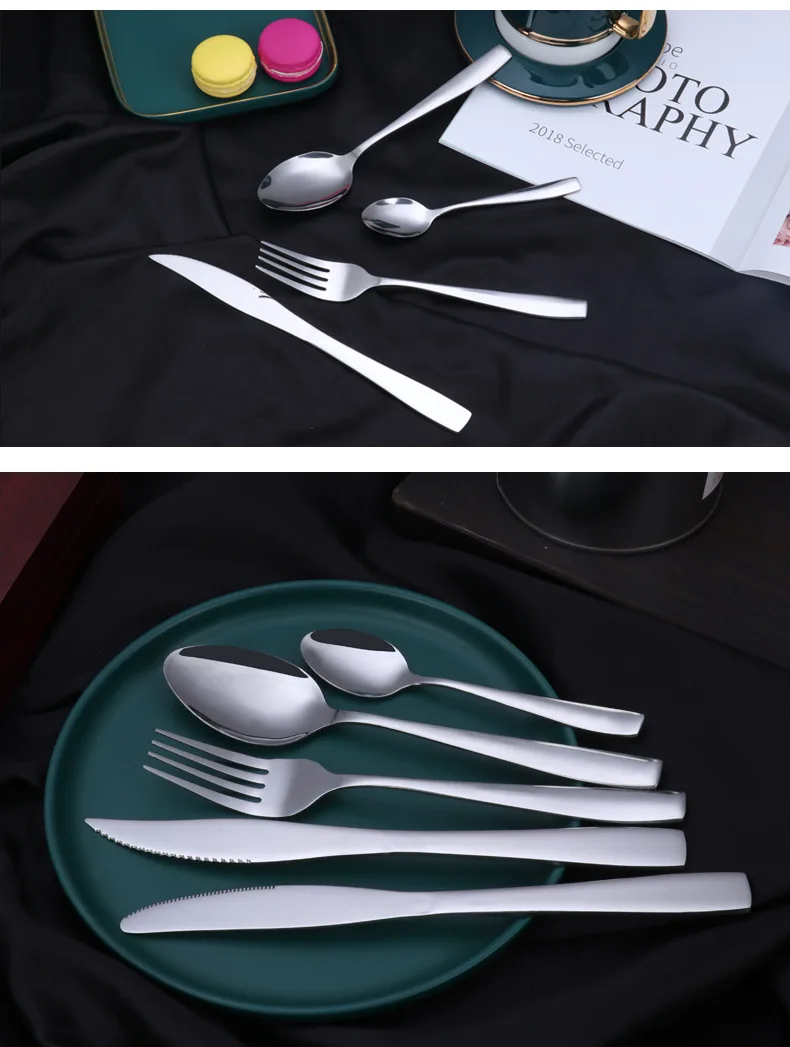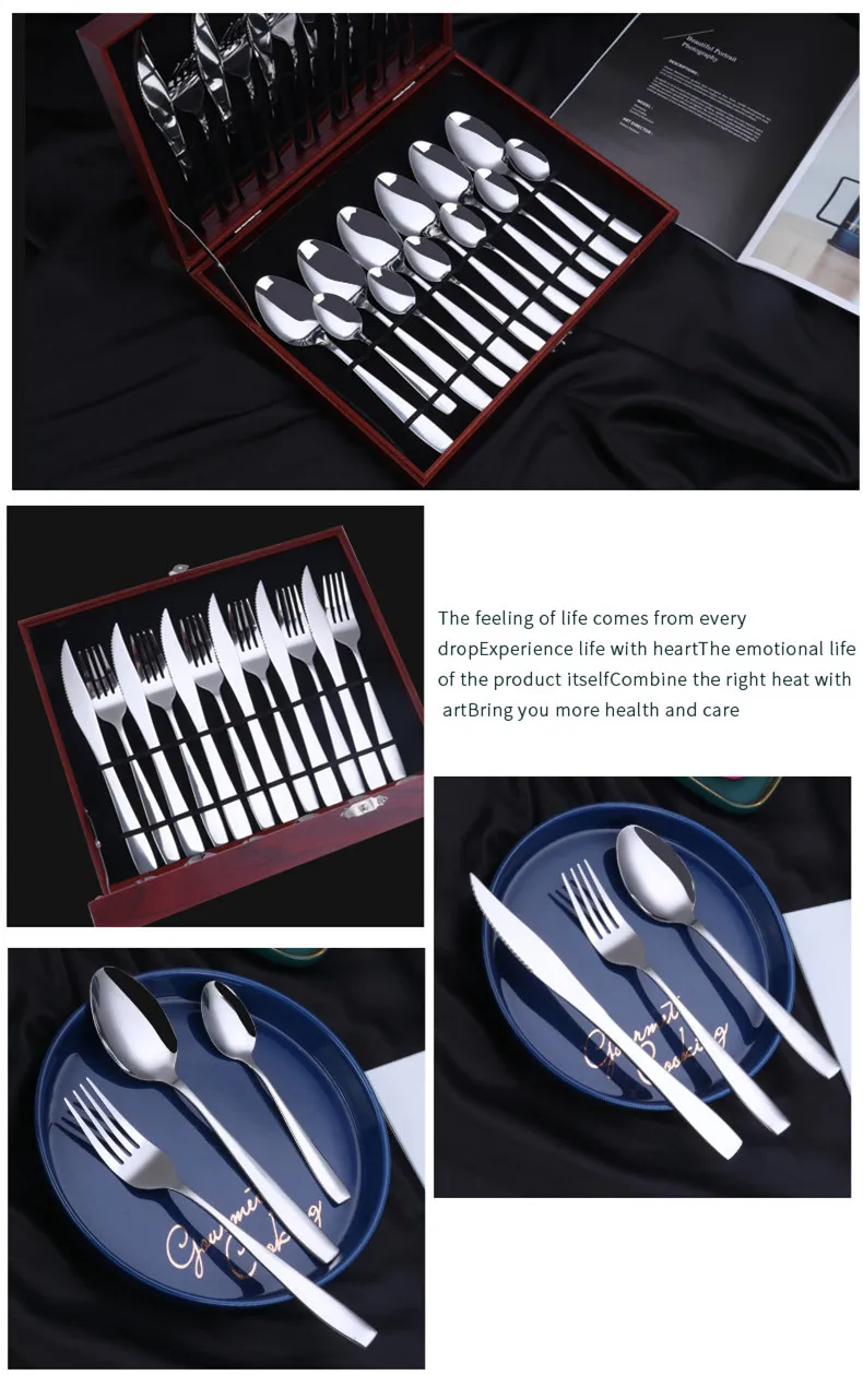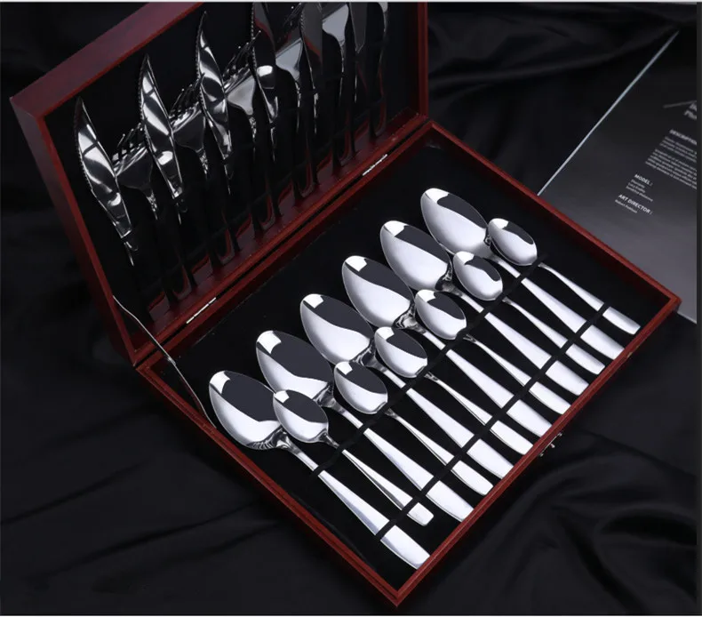 Набор столовых приборов из нержавеющей стали, Западный столовый нож, вилка, ложка 24 шт./компл., с деревянной коробкой