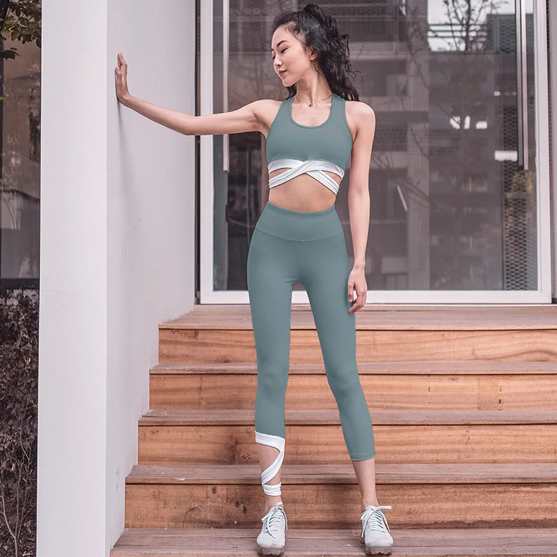 Комплект спортивной одежды для йоги, женские штаны для йоги, комплект одежды из 2 предметов, новинка 2020, укороченные топы, спортивная одежда для фитнеса, костюмы для женщин, одежда