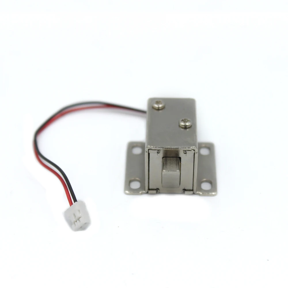DC миниатюрный замок с электроуправлением DC6V / 12V шкафчики электромагнитный замок Инструкции по использованию и установке 1. Красные и черные провода являются линиями электромагнитного замка, независимо от положительных и отрицательных полюсов. Входное напряжение-DC12V, а ток-0.43A. 2. В тех случаях, когда переключатель подключен к источника питания, длина замок язык является 4,4 мм, что узнаемо через телепередачи, дверь открыта и питания не включен, язык блокировки продлевается на внутренней пружины 4,4 мм, и дверь закрыта.