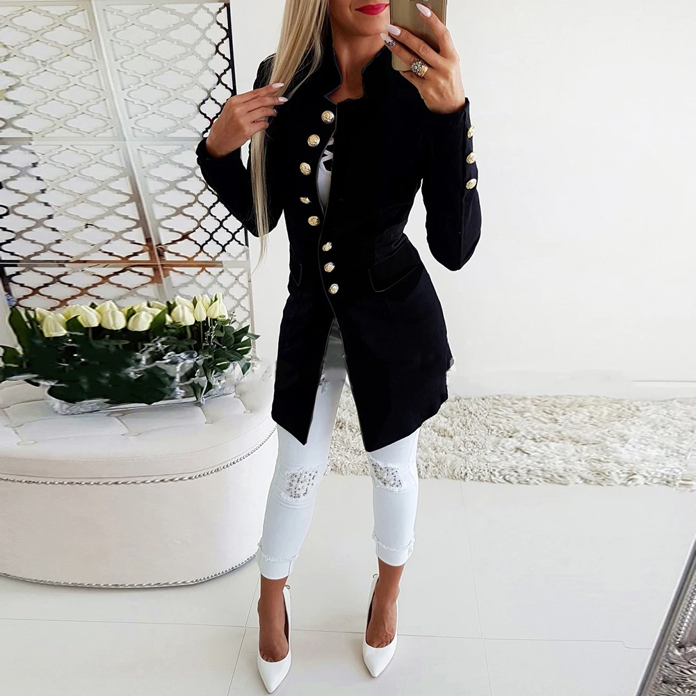 Модный женский Повседневный Длинный блейзер с длинными рукавами и пуговицами; Пиджак; Верхняя одежда